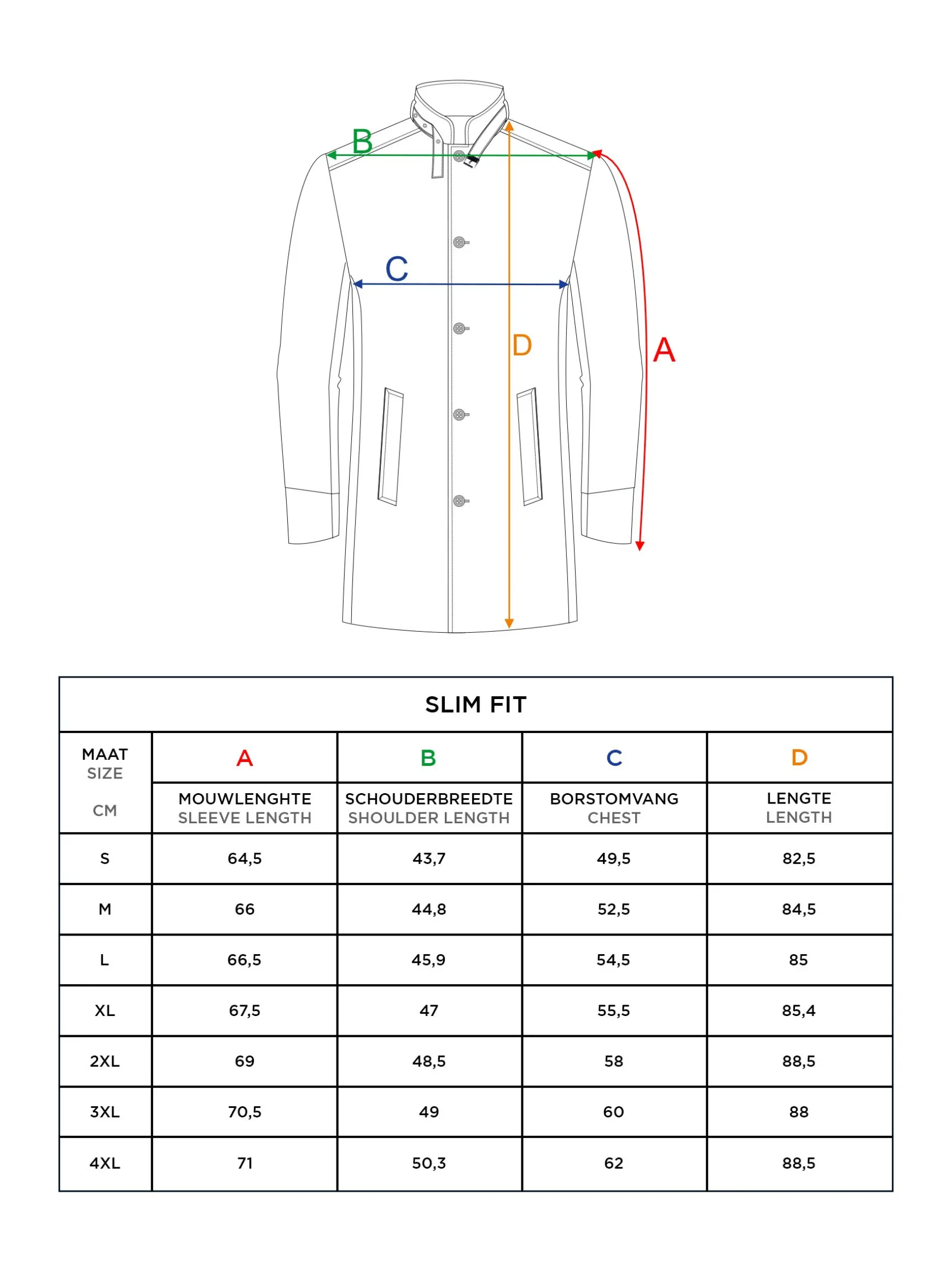 Bestaat uit 64% Polyester 31% Viscose en. 5% Elastaan Om de kwaliteit te behouden, raden we aan deze trenchcoat droog te wassen. Niet bleken. Strijken op 150 °C. Niet in de droger drogen.
