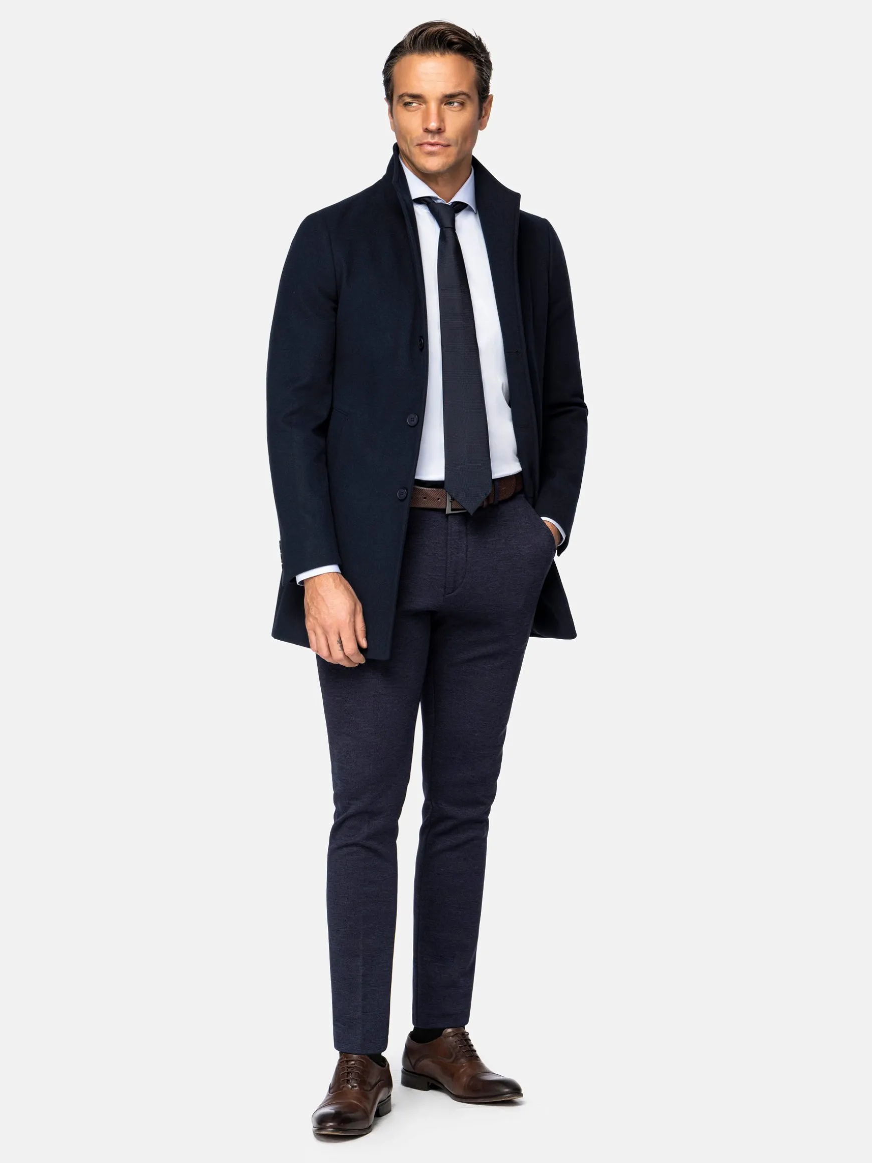 Ontdek tijdloze elegantie met onze Widespread Notch Collar Dark Navy Trenchcoat. Deze geraffineerde jas combineert een klassiek ontwerp met moderne flair. De diepe marine tint past bij elke outfit, waardoor het een veelzijdige keuze is voor verschillende gelegenheden. De brede notch kraag voegt een vleugje verfijning toe en omlijst je gezicht prachtig.