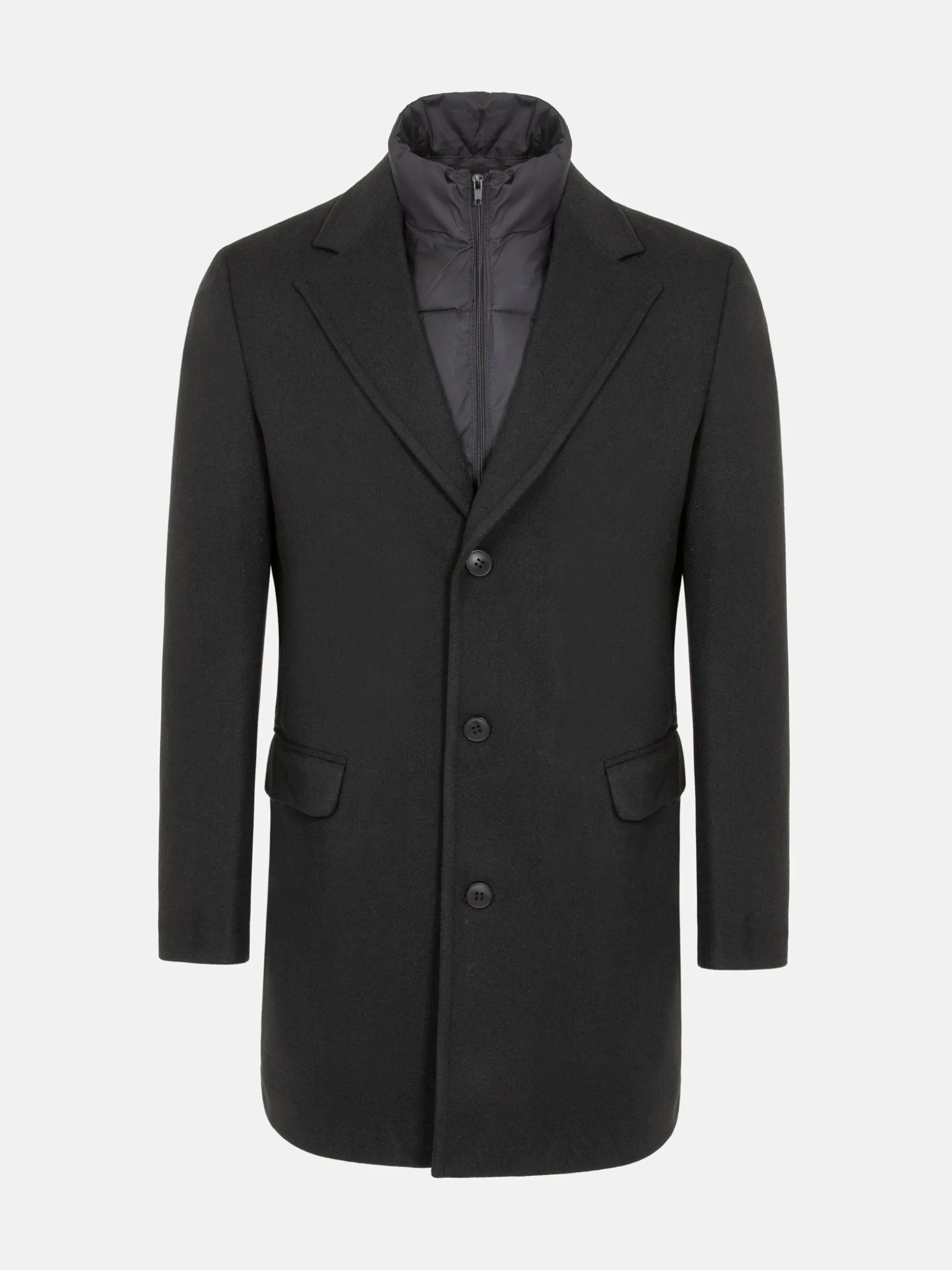 De Korbin Notch Lapelled Black Trench Coat combineert stijl en functionaliteit. Met een gestroomlijnd, veelzijdig ontwerp is hij perfect voor formele en casual gelegenheden. De klassieke revers, moderne pasvorm en rekbare stof zorgen voor comfort en flexibiliteit. Het gewatteerde binnenvest met ritssluiting zorgt voor extra warmte, terwijl klepzakken en een verborgen zak handige opbergruimte bieden.
