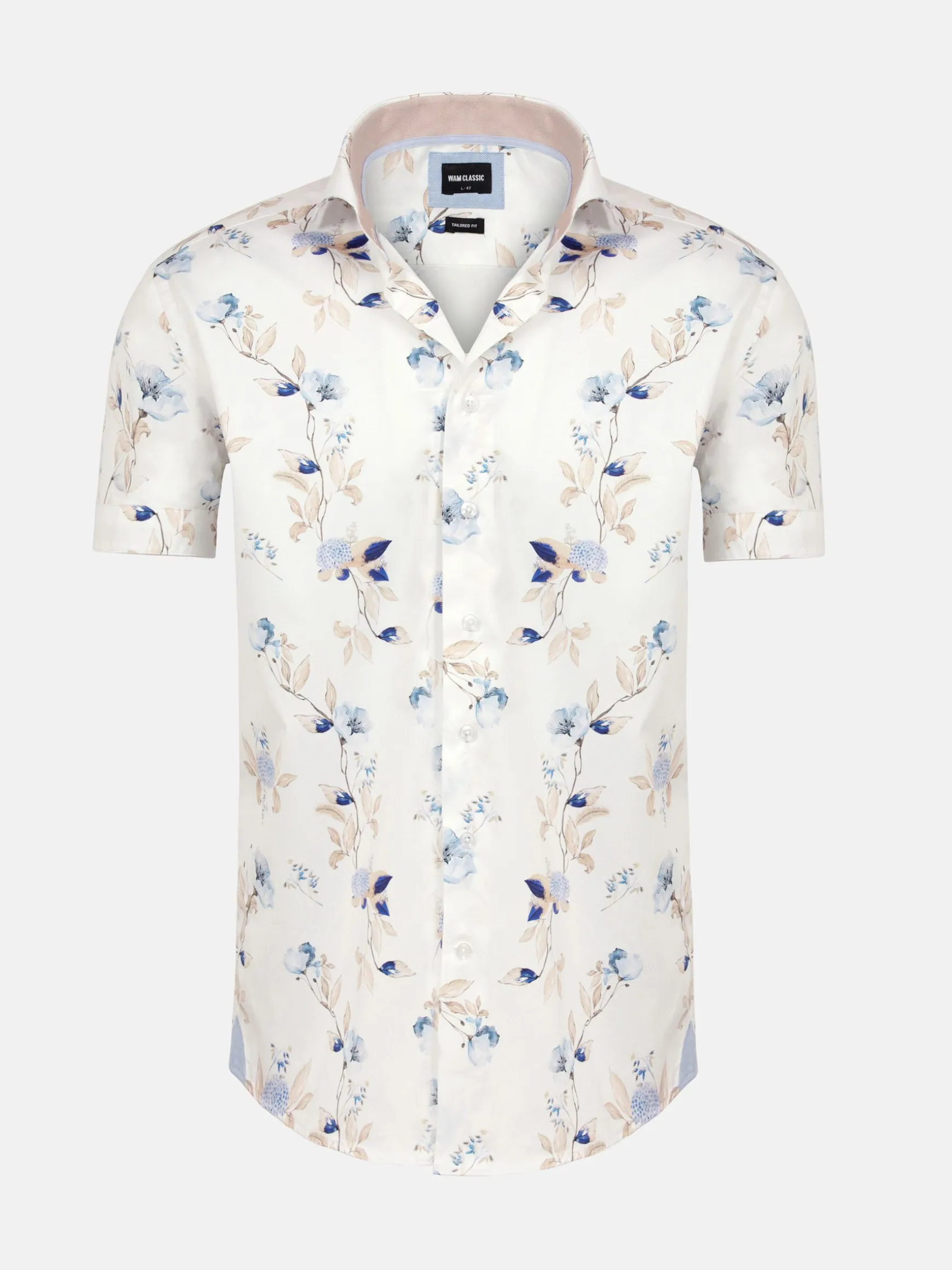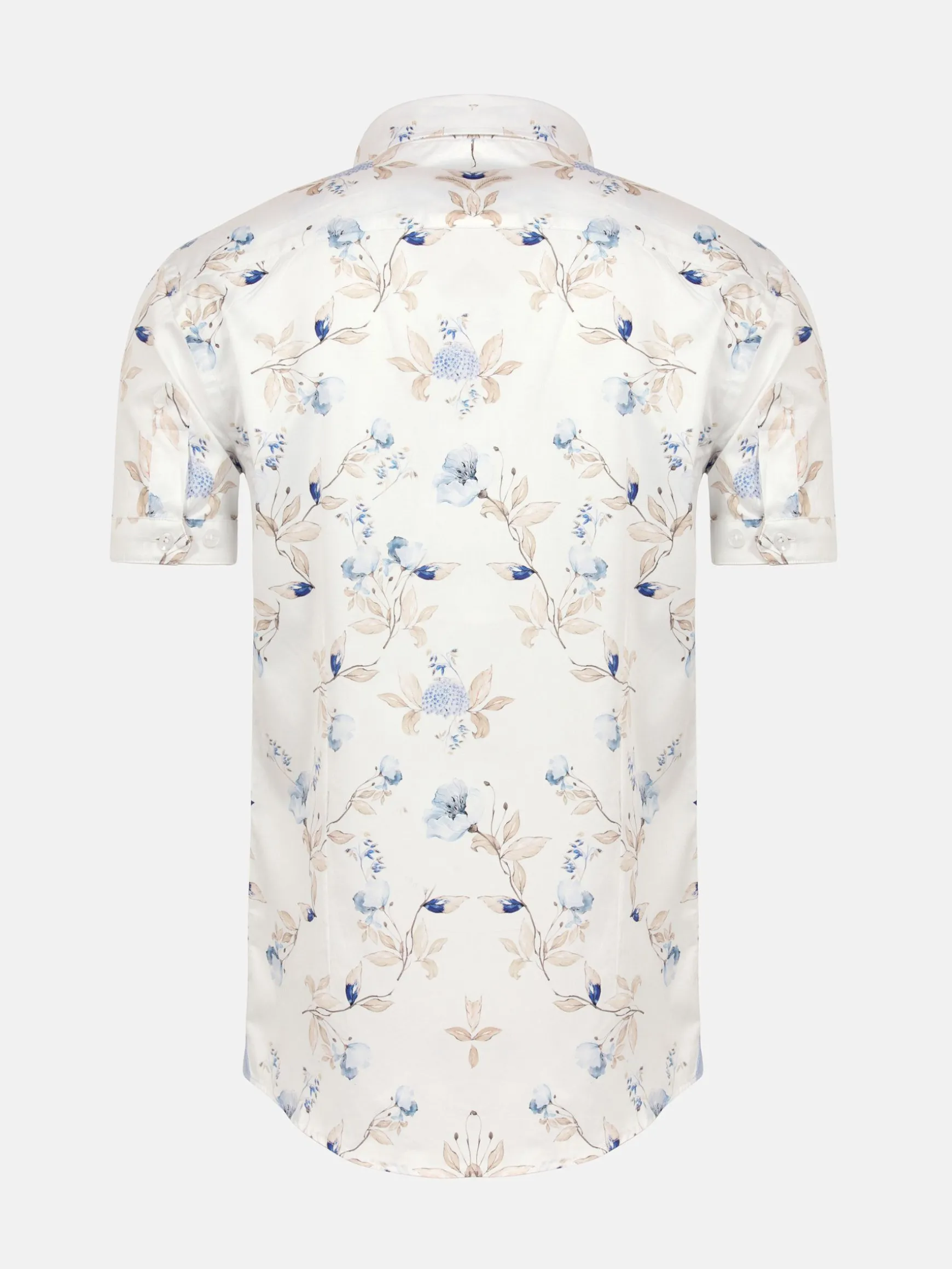 Primrose Tailored Fit Wit Overhemd. Met zijn cutaway kraag, bloemenprint en stretchstof biedt dit overhemd zowel comfort als elegantie. Perfect voor elke gelegenheid.