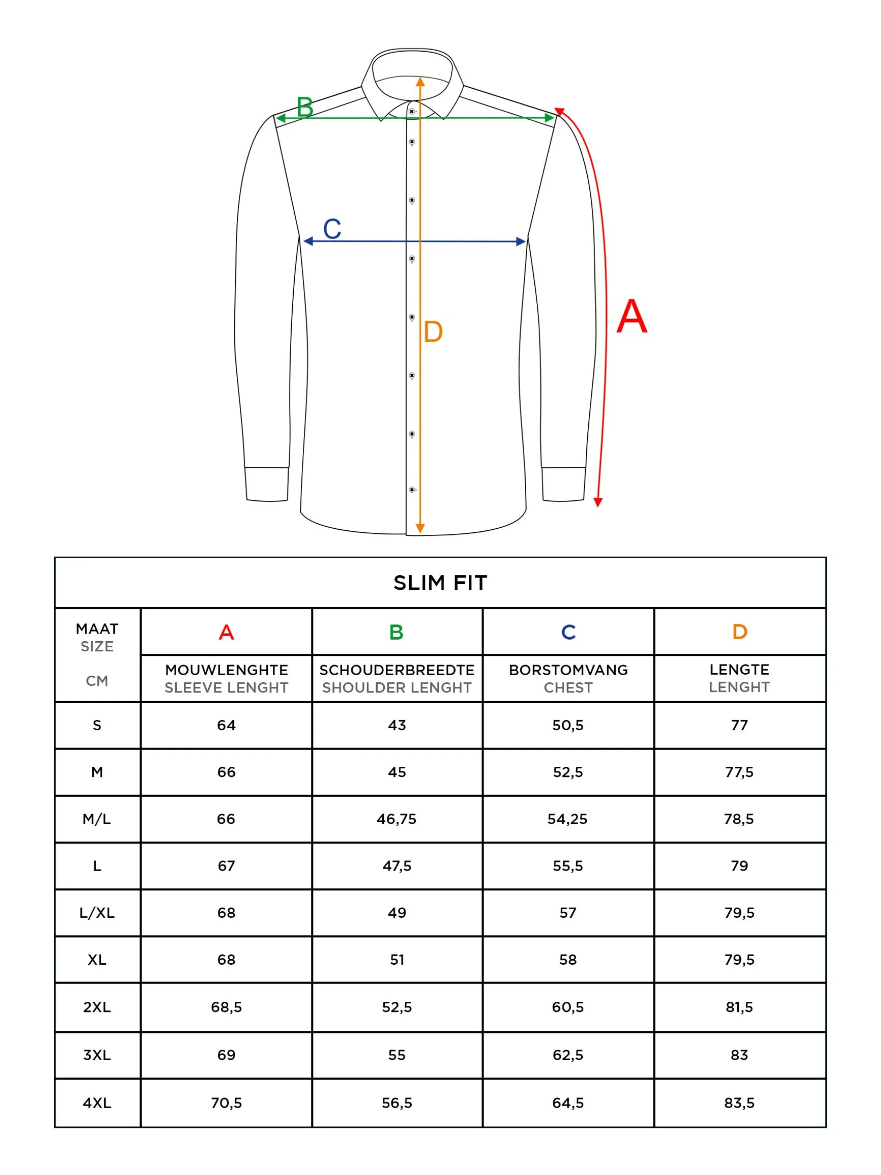Bestaande uit 100% katoen. Om de kwaliteit te behouden, raden we aan dit overhemd binnenstebuiten te wassen op 30°C. Niet bleken. Strijken op een temperatuur van 150°C. Niet geschikt voor de droger.