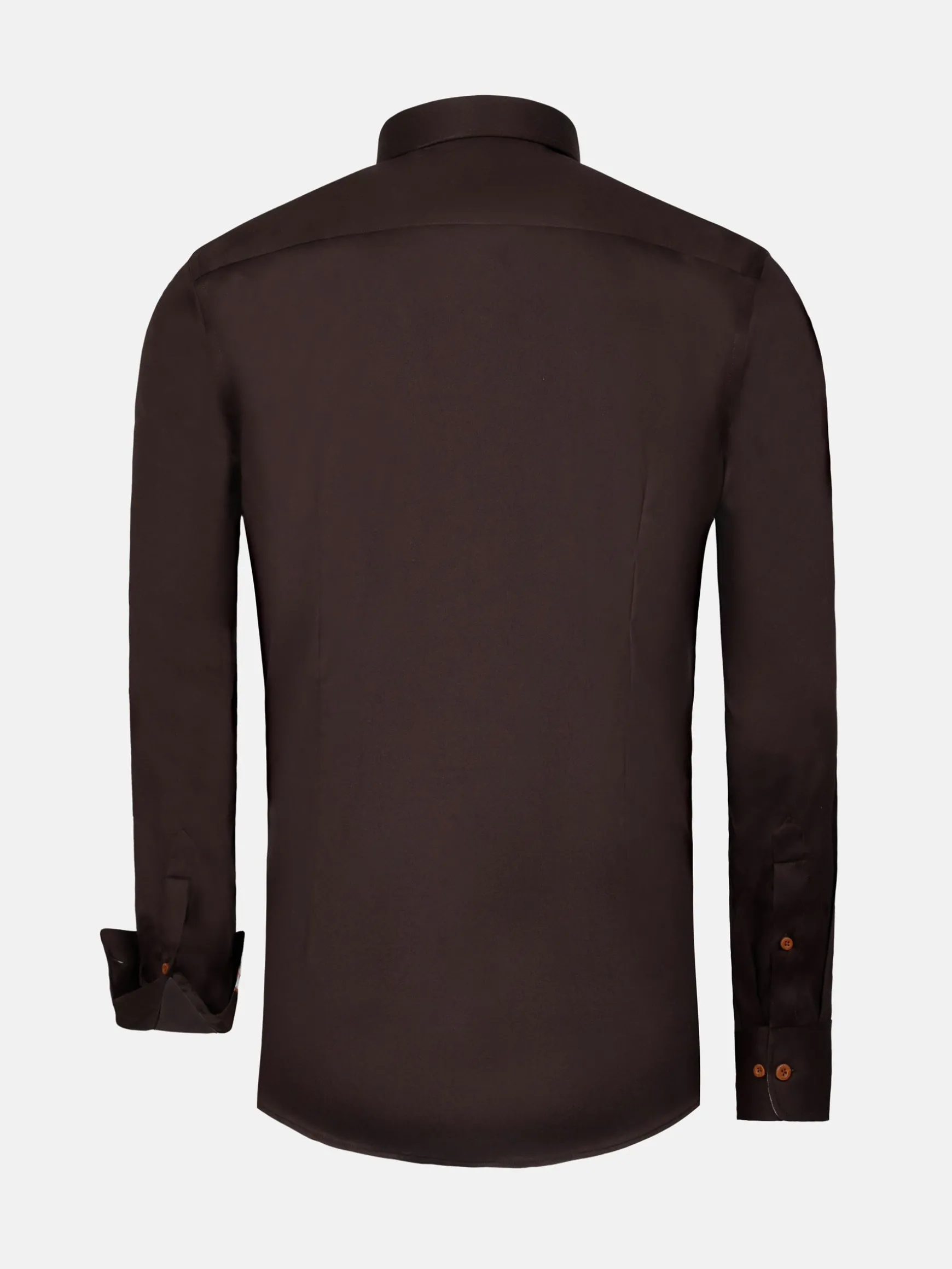 Duik in de wereld van ongeevenaarde verfijning met ons Solid Brown Long Sleeve Shirt. Ervaar tijdloze stijl en comfort, zorgvuldig vervaardigd met een cut-away kraag voor een exquise touch. Verhoog je garderobe vandaag nog en omarm de essentie van verfijnde mode.