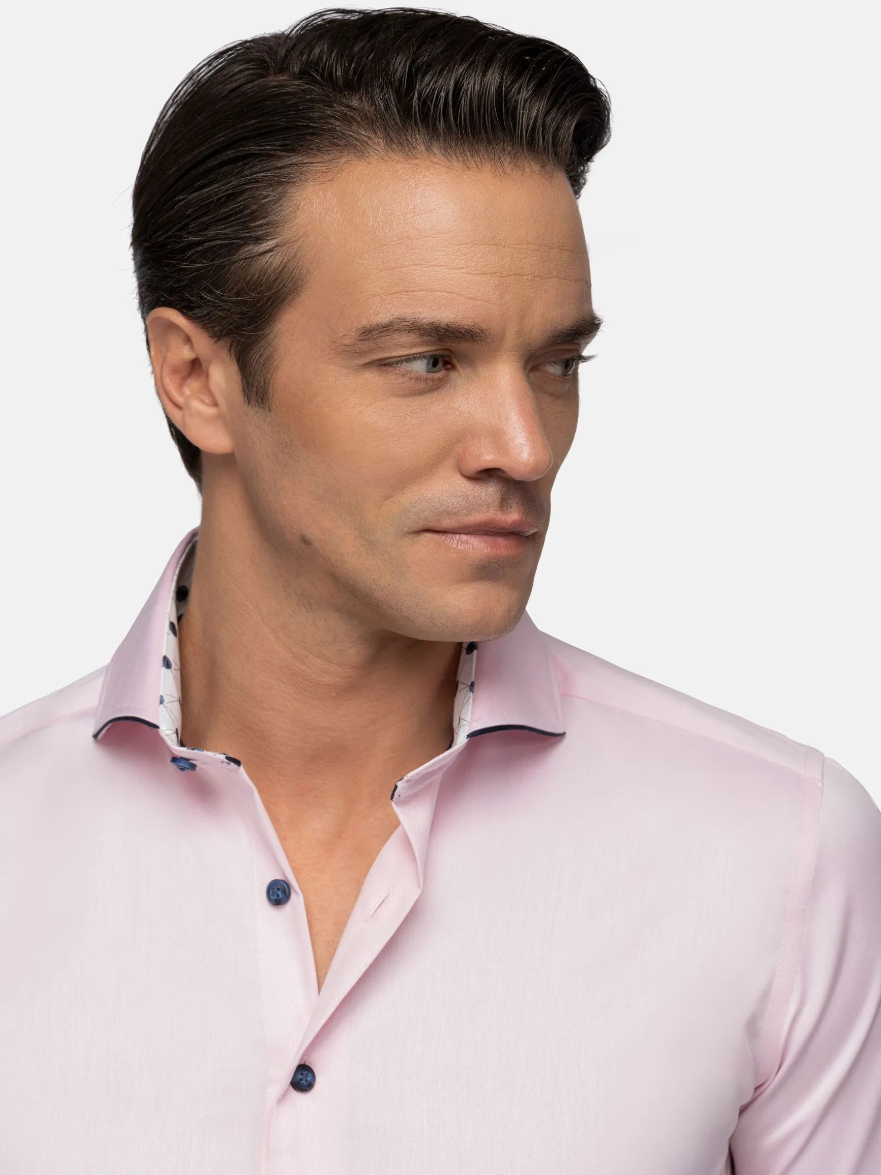 Overhemd met lange mouwen in mooi roze. De drie knopen in de hals zijn mooi afgewerkt en geven het overhemd een fraaie look. Dit overhemd met colbert staat mooi op een pantalon, maar kan even goed gedragen worden op jeans voor een lossere uitstraling.