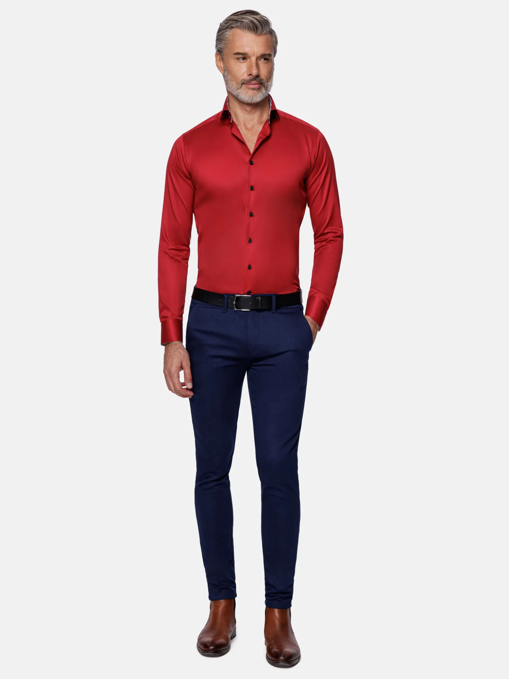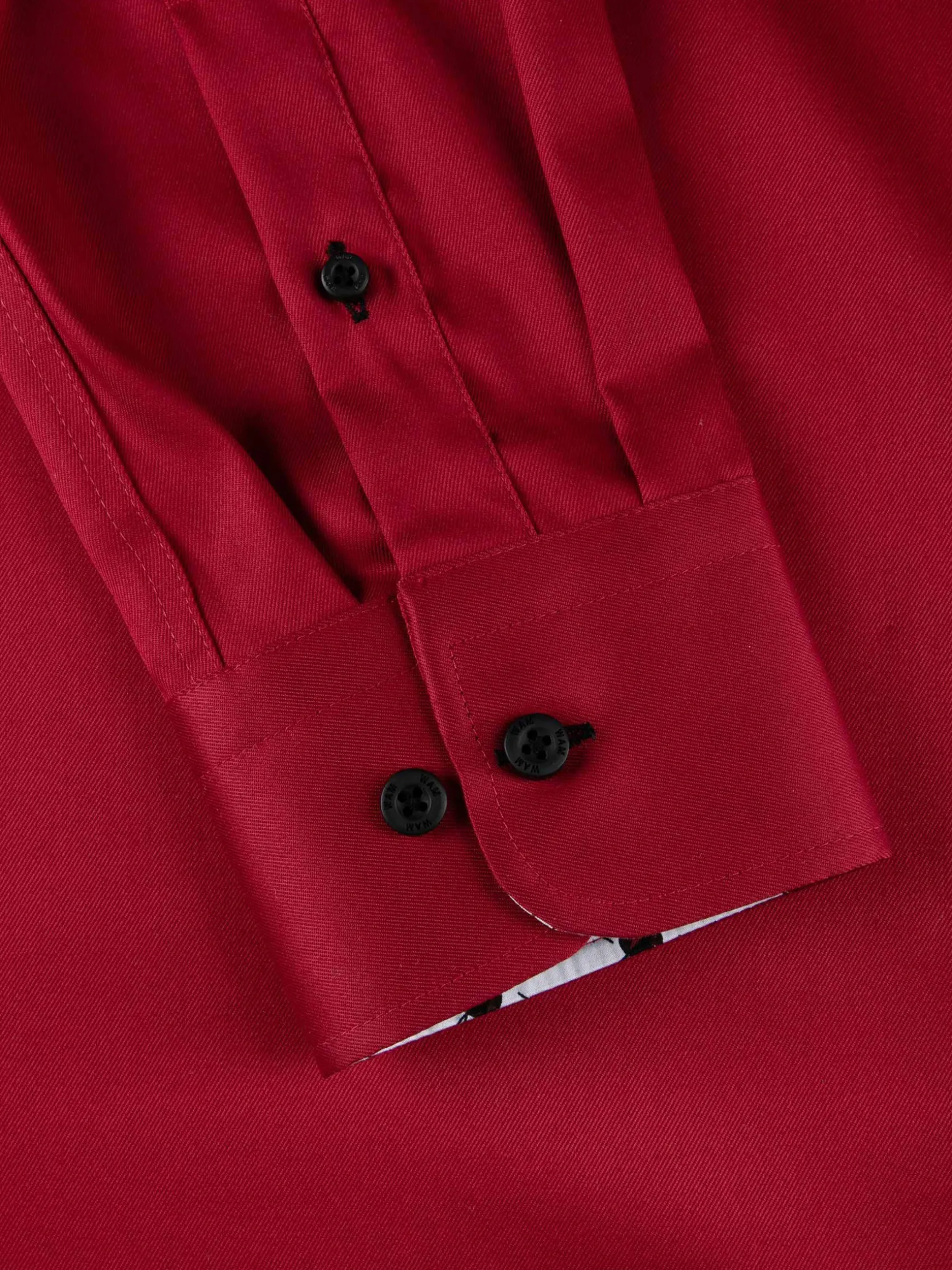 Duik in de wereld van ongeevenaarde verfijning met ons Solid Red Long Sleeve Shirt. Ervaar tijdloze stijl en comfort, zorgvuldig gemaakt met een cut-away kraag voor een exquise touch. Verhoog je garderobe vandaag nog en omarm de essentie van verfijnde mode