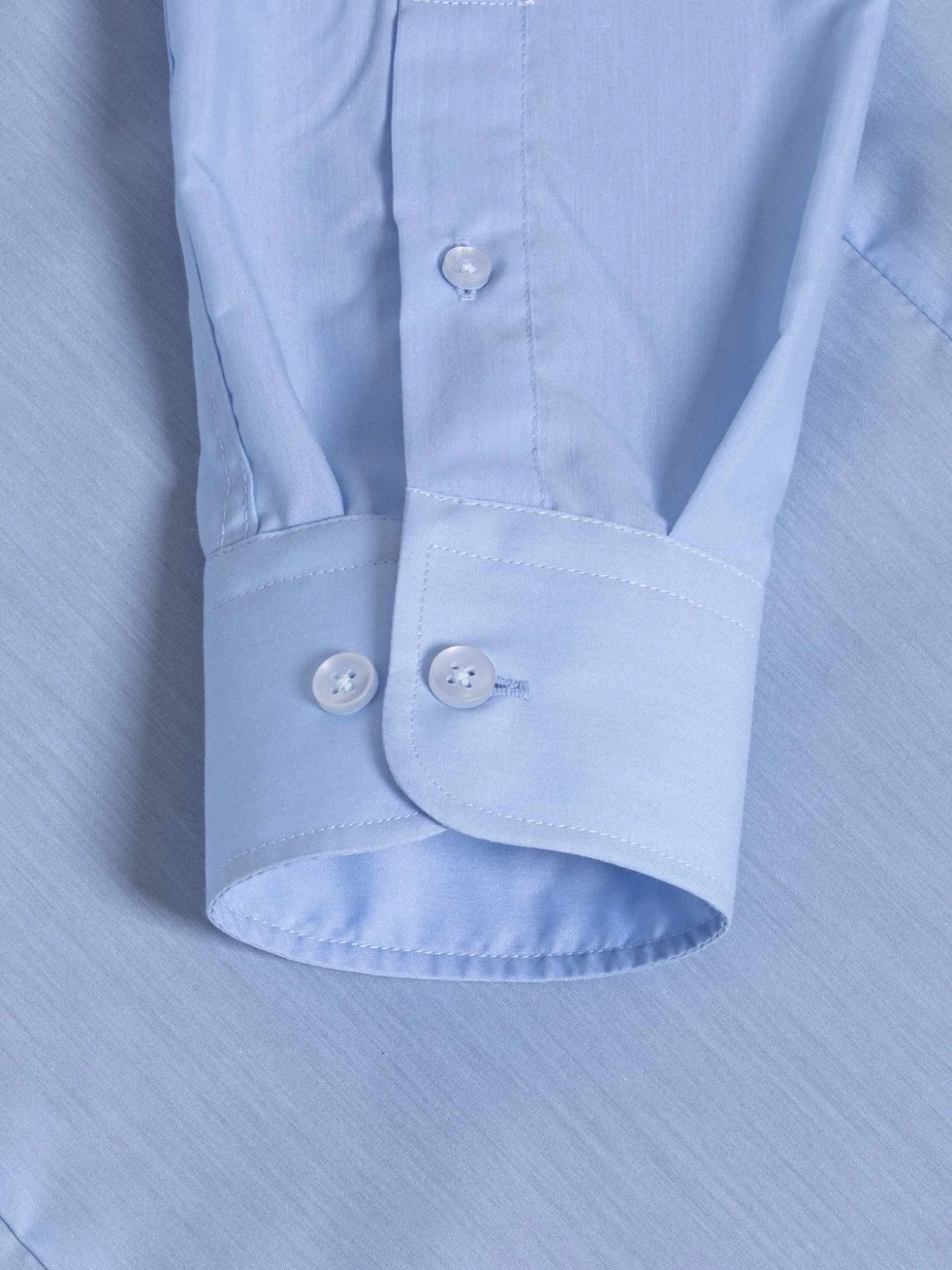 Lichtblauw overhemd met knoopsluiting en lange mouwen. Dit prachtige overhemd staat zowel goed op een pantalon als op jeans en loopt licht af aan de onderkant. Afgewerkt met knopen met een lichte glans.