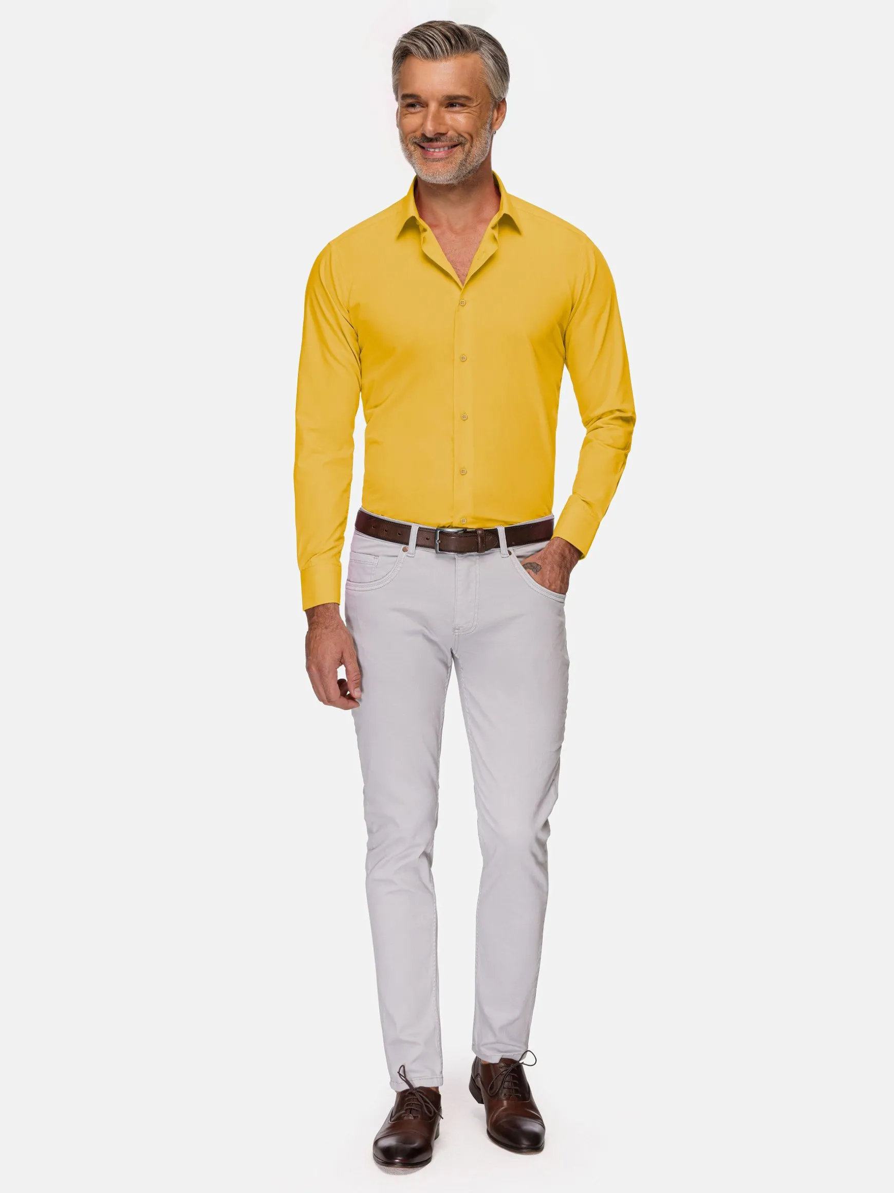 WAM DENIM Overhemd Lange Mouwen*Leira Solid Yellow Overhemd Lange Mouw