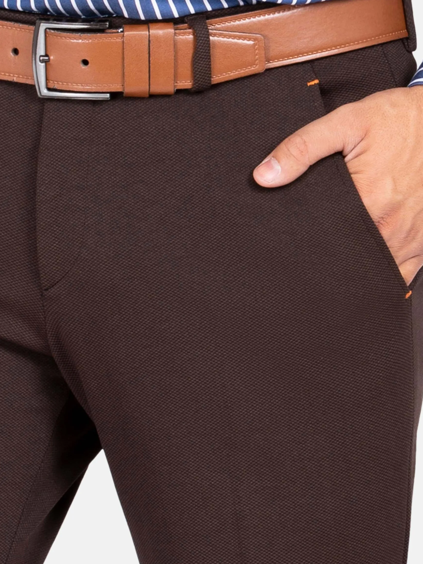 Bruine pantalon met ritssluiting. Door de neutrale kleur is deze pantalon te combineren met verschillende kleuren en kledingstukken. Voor een nette look is deze pantalon uitstekend te combineren met een mooi overhemd.