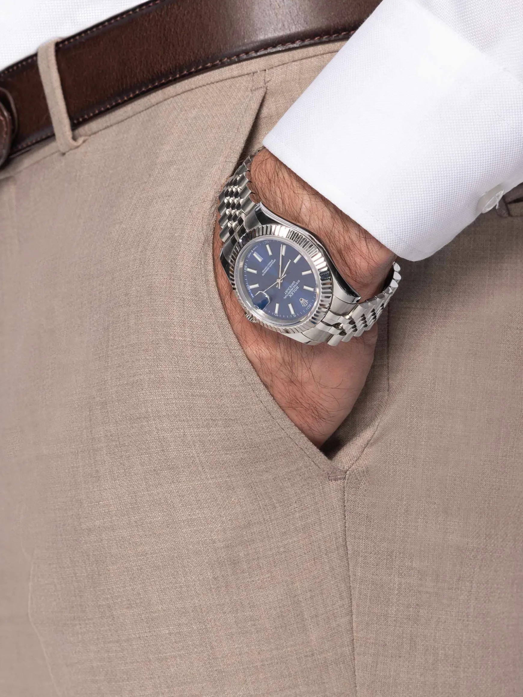 Moeiteloze elegantie wacht op je met onze slim-fit beige pantalon. Verhoog je garderobe, straal zelfvertrouwen uit en omarm tijdloze stijl. Herdefinieer verfijning met elke stap. Je modereis begint hier, moeiteloze elegantie, verfijnde stijl, modeperfectie.