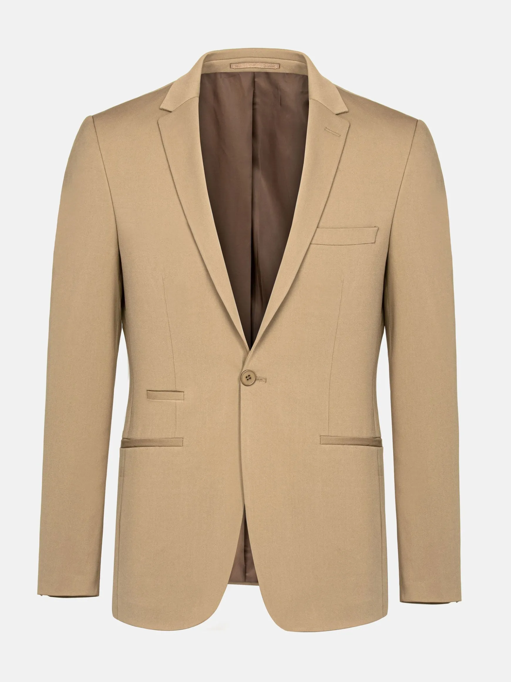 De Colten Camel Blazer combineert verfijning en moderne stijl met zijn revers, slanke pasvorm en enkele hoornen knoopsluiting. Het heeft praktische elementen zoals een borstzak, binnenzakken, een kleine zak met paspel en chirurgenmanchetten met functionele knoopsgaten. Zijsplitjes zorgen voor comfort en beweging, terwijl de zwarte voering en paspelzakken bijdragen aan de verfijnde elegantie, waardoor het perfect is voor elke gelegenheid.