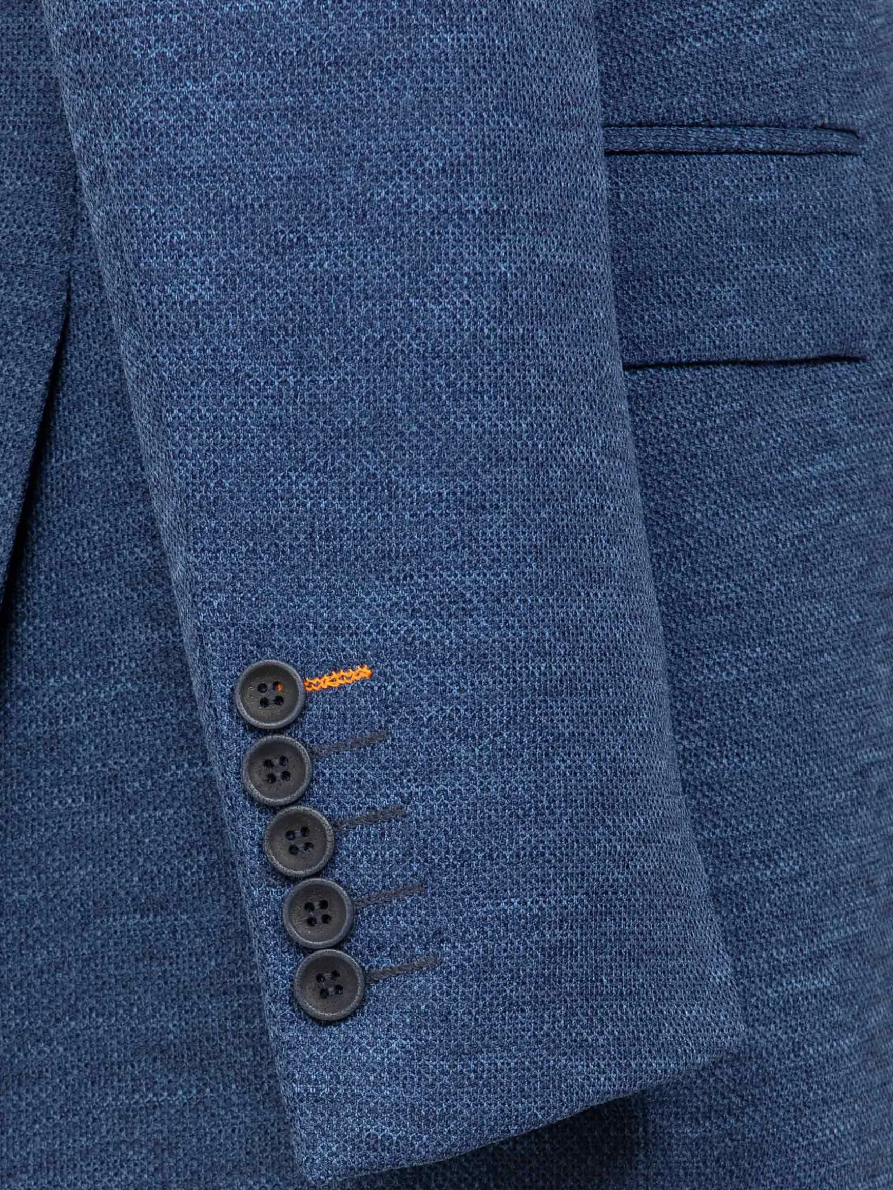 David Paul Single Breast Blue Blazer heeft een gestroomlijnd single-breasted ontwerp, tweeknoops Notch Lapel, slim fit pasvorm, stretchstof voor comfort, klepzakken, verborgen steekzakken en een klassieke borstzak.