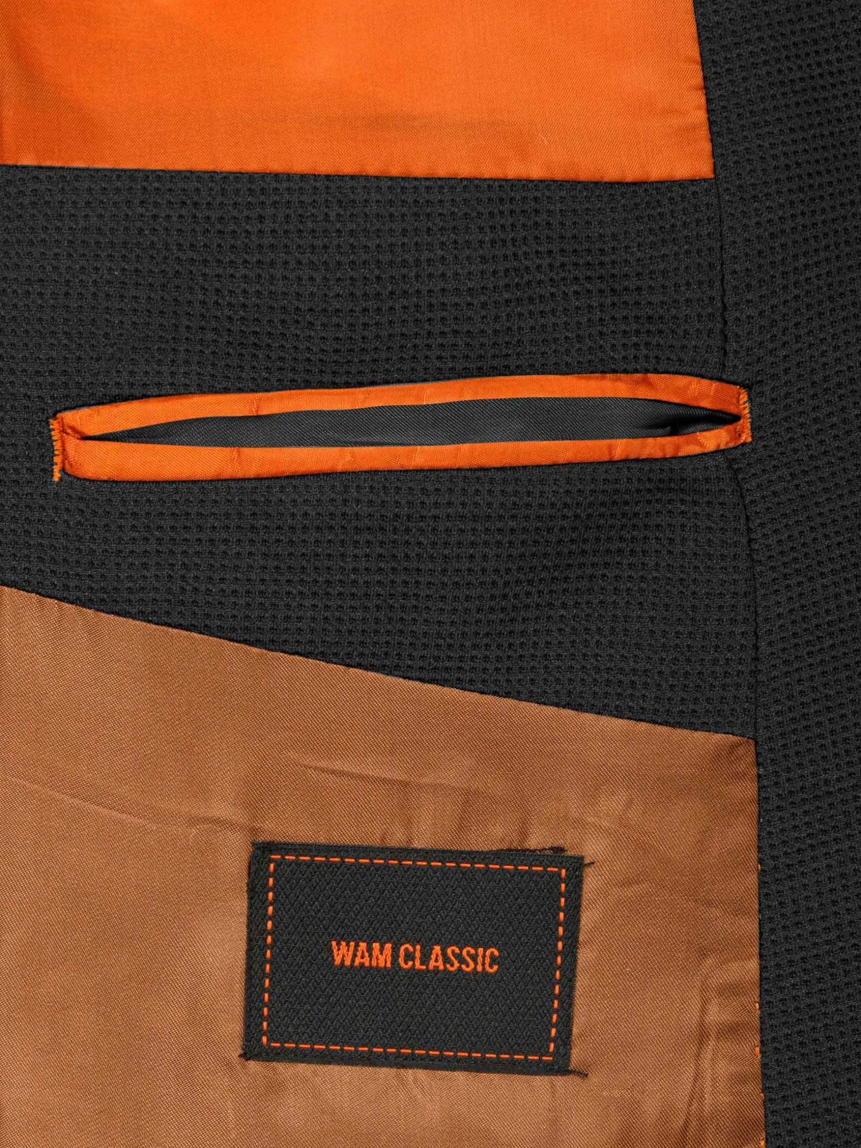Jeremias Black Blazer, met een kenmerkende Graph-textuur. Deze slim-fit blazer biedt een gestroomlijnde look met een single-breasted ontwerp en Peak revers. Het heeft praktische details zoals binnen- en klepzakken, samen met een paspelzak op de borst voor extra raffinement. Compleet met vijf hoornen knopen en twee zijopeningen aan de achterkant, combineert deze blazer elegantie met functionaliteit voor een opvallend ensemble. Perfect voor elke gelegenheid.