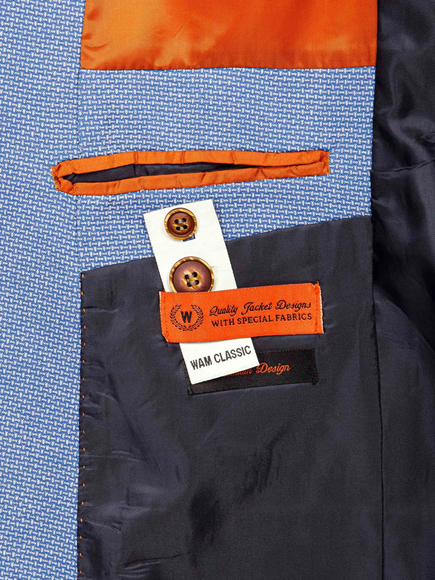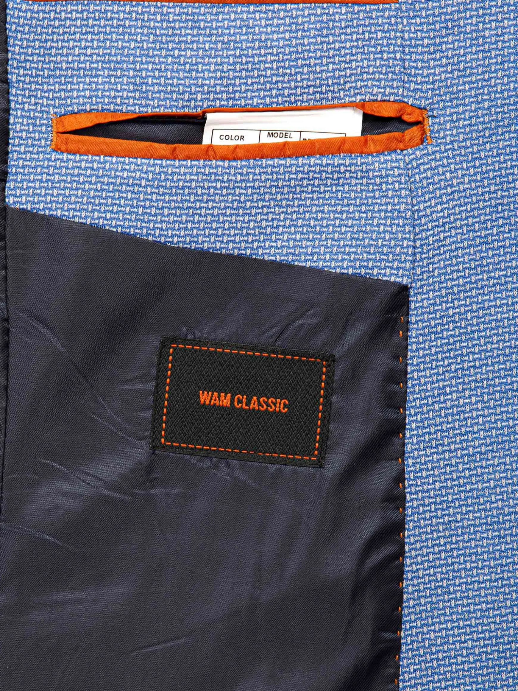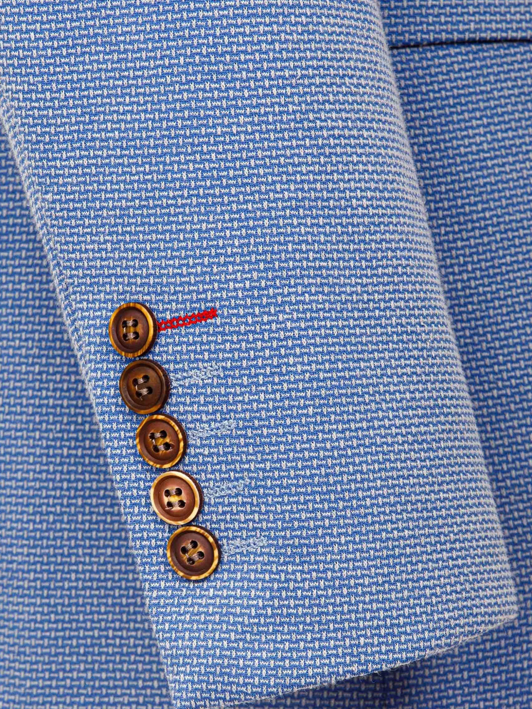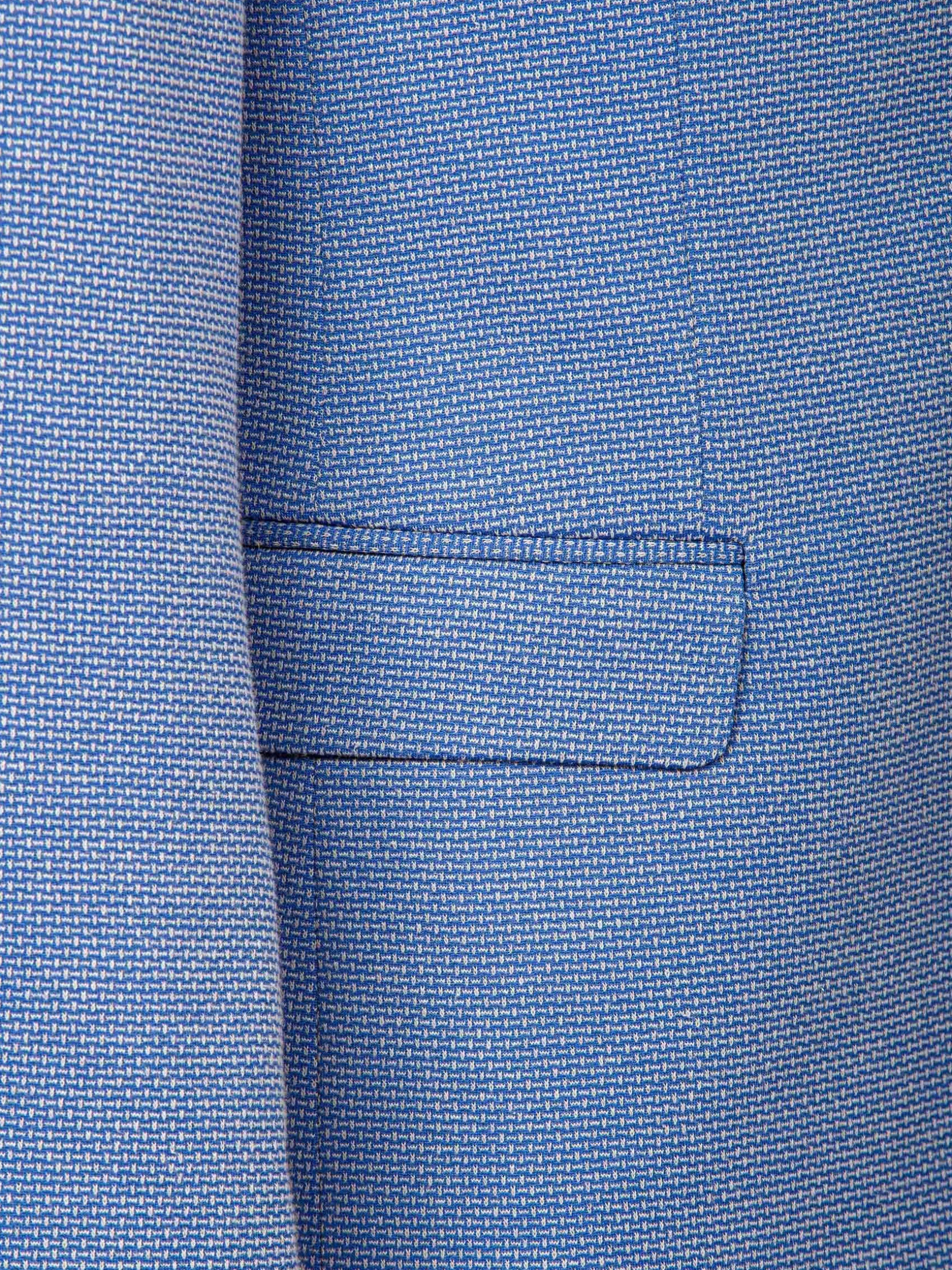 Blauwe blazer van Niklaus, met een kenmerkende textuur van spijkerkopstof. Deze slim-fit blazer biedt een gestroomlijnde look met een single-breasted ontwerp en Peak revers. Het heeft praktische details zoals binnen- en klepzakken, samen met een paspelzak op de borst voor extra raffinement. Compleet met vijf hoornen knopen en twee zijopeningen aan de achterkant, combineert deze blazer elegantie met functionaliteit voor een opvallend ensemble. Perfect voor elke gelegenheid.