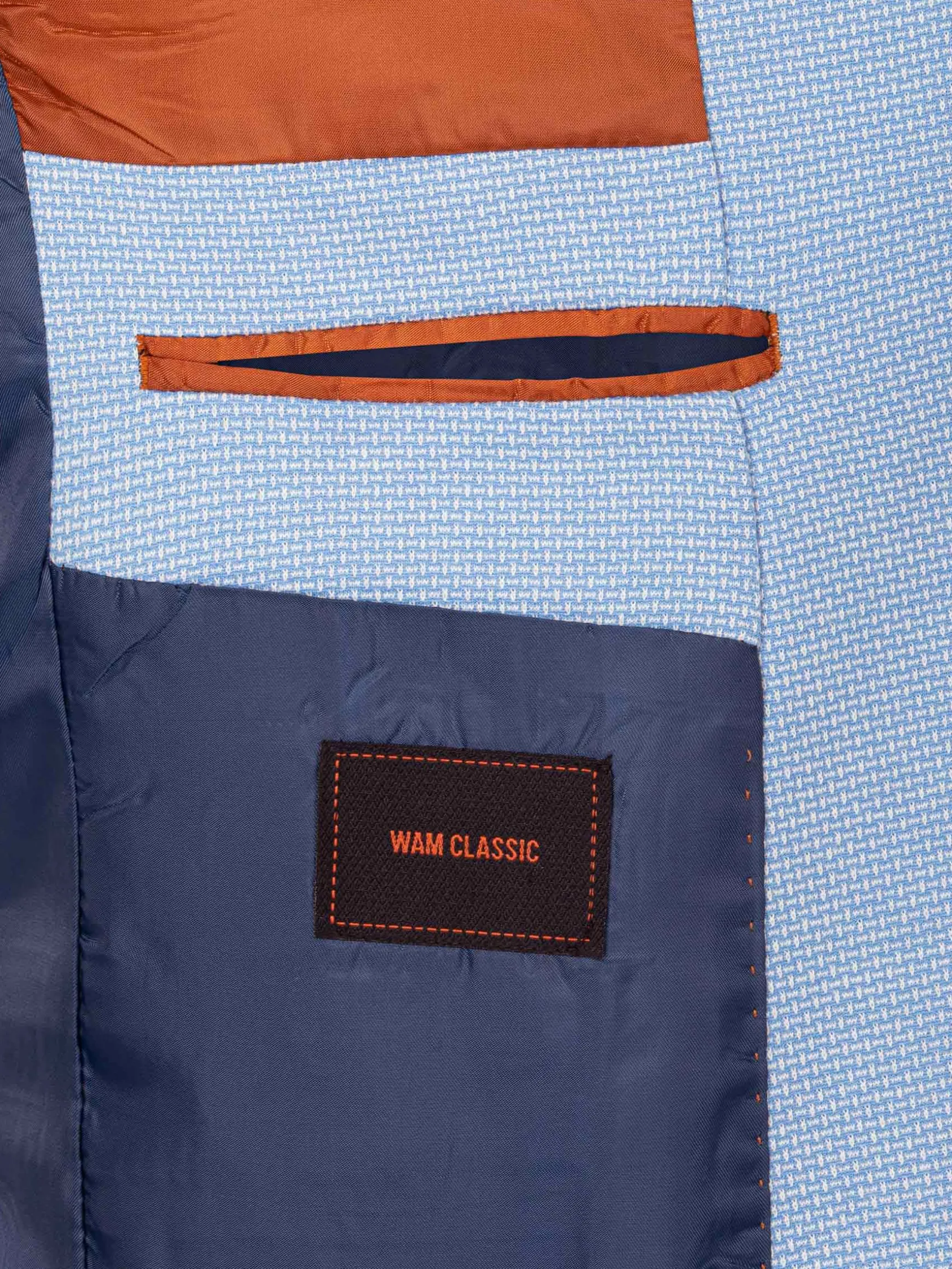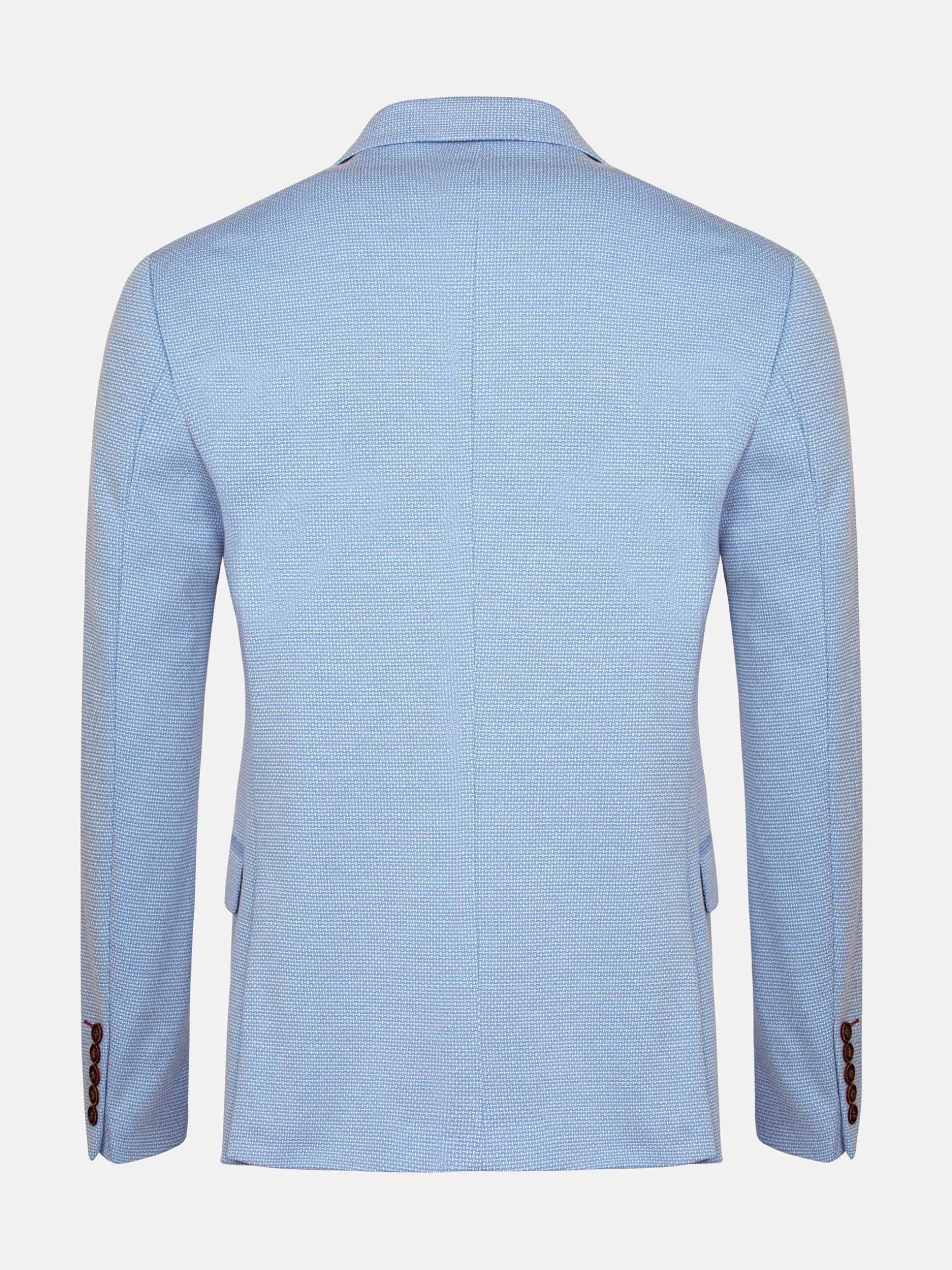 Niklaus Light Blue Colbert, met een kenmerkende textuur van spijkerkopstof. Deze slim-fit blazer biedt een gestroomlijnde look met een single-breasted ontwerp en Peak revers. Het heeft praktische details zoals binnen- en klepzakken, samen met een paspelzak op de borst voor extra raffinement. Compleet met vijf hoornen knopen en twee zijopeningen aan de achterkant, combineert deze blazer elegantie met functionaliteit voor een opvallend ensemble. Perfect voor elke gelegenheid.