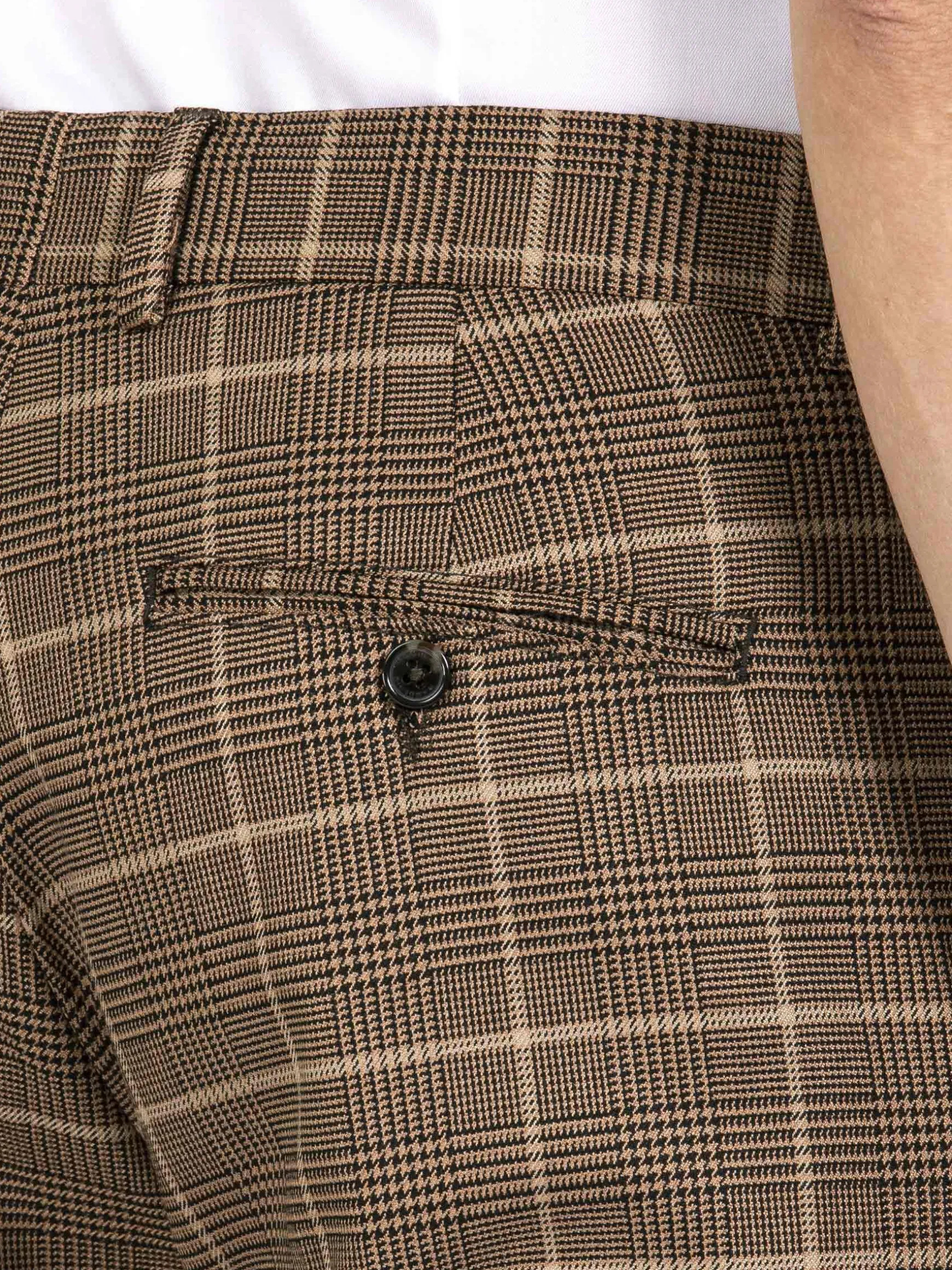 Bestaande uit 63% polyester, 34% viscose, 3% elastaan. Om de gewenste kwaliteit te behouden raden we aan deze pantalon binnenstebuiten te wassen op 30° C. Niet bleken. Strijken op de temperatuur van 150° C. Niet geschikt voor de droger.