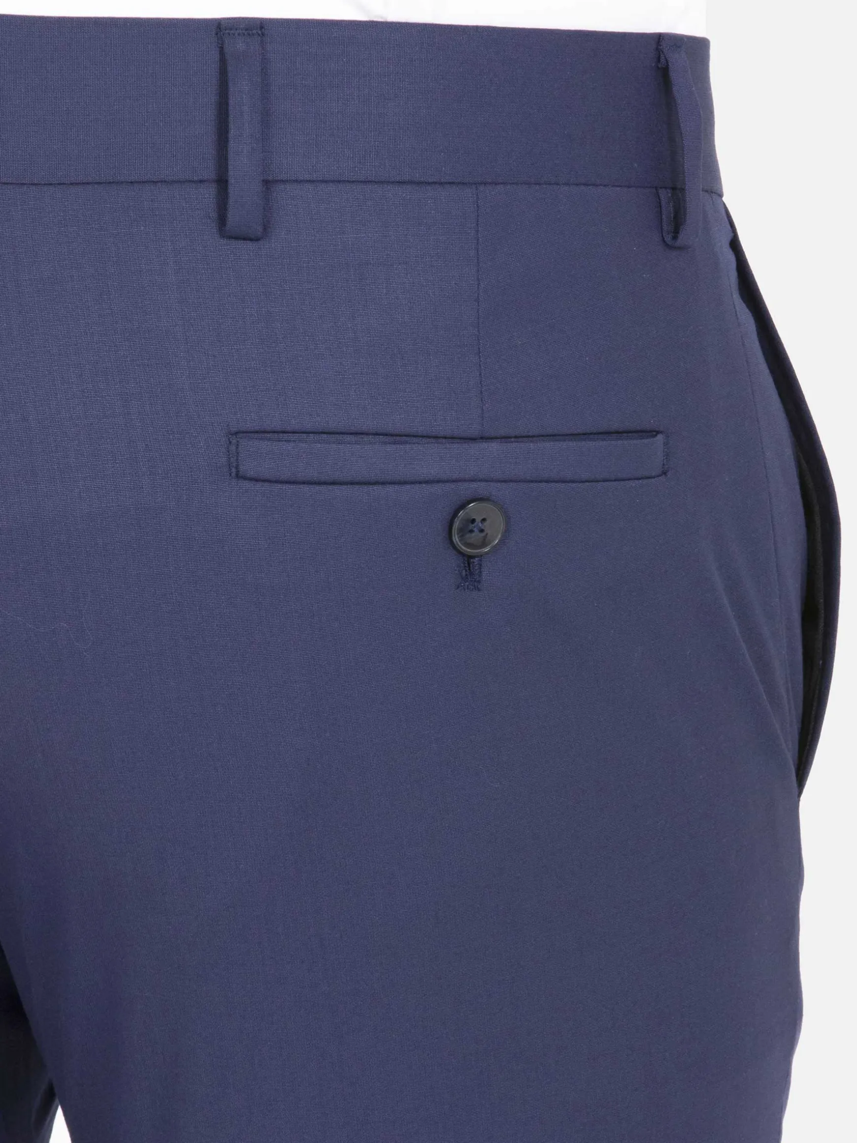 Prachtige pantalon in navy kleur van een hoogwaardige polyestermix met viscose voor een vintage uitstraling. Dit ontwerp is voorzien van twee voorzakken, twee achterzakken, een knoopsluiting en een rits. Een comfortabele en stijlvolle pantalon. Draag er een overhemd bij en voeg de bijpassende blazer toe voor een chique look.