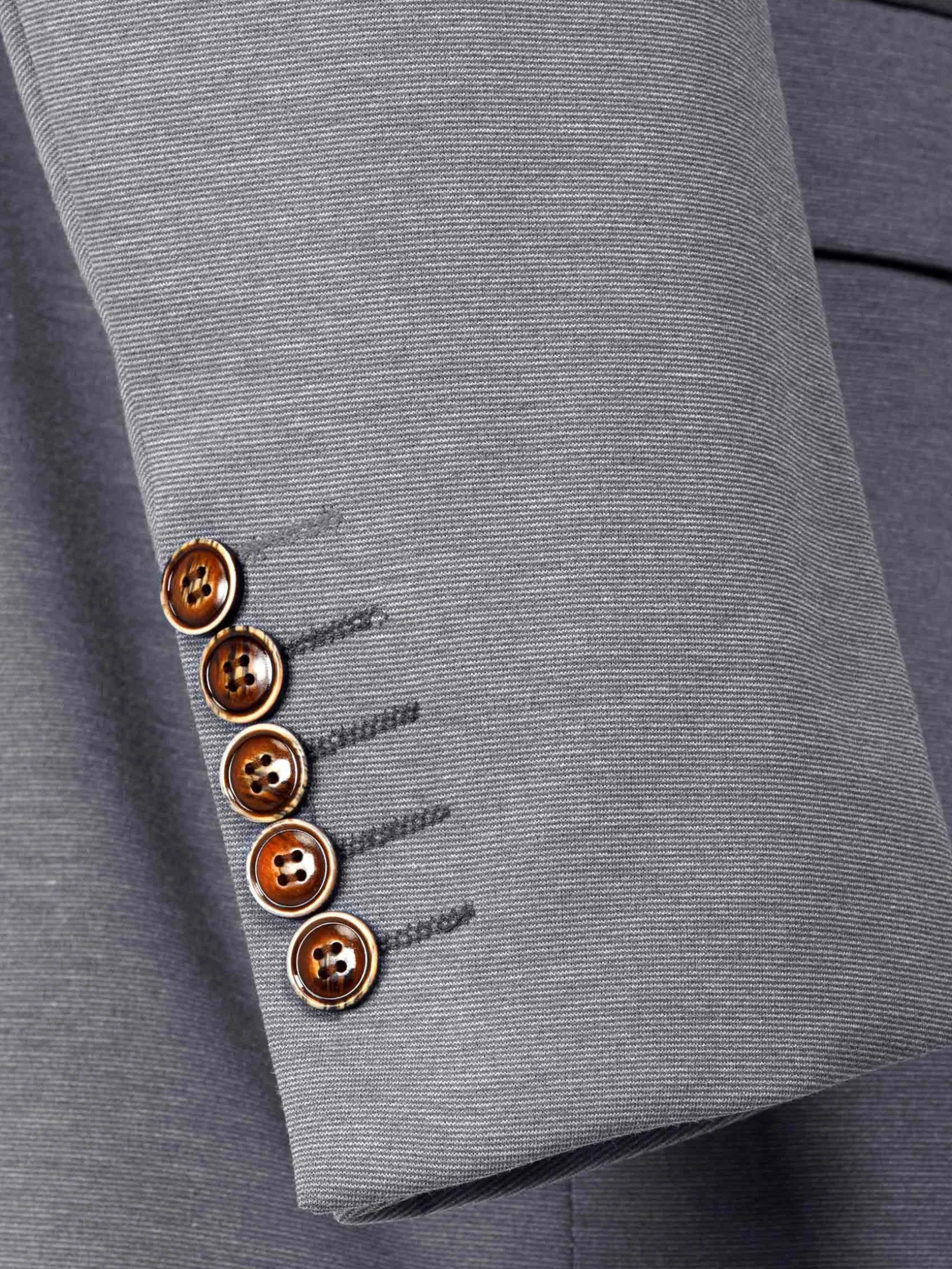Guillermo Anthracite Blazer, met een kenmerkende Shark Skin-textuur. Deze slim-fit blazer heeft een gestroomlijnde look met een enkele rij knopen en een Peak revers. Het heeft praktische details zoals binnen- en klepzakken, samen met een paspelzak op de borst voor extra raffinement. Compleet met vijf hoornen knopen en twee zijopeningen aan de achterkant, combineert deze blazer elegantie met functionaliteit voor een opvallend ensemble. Perfect voor elke gelegenhei.