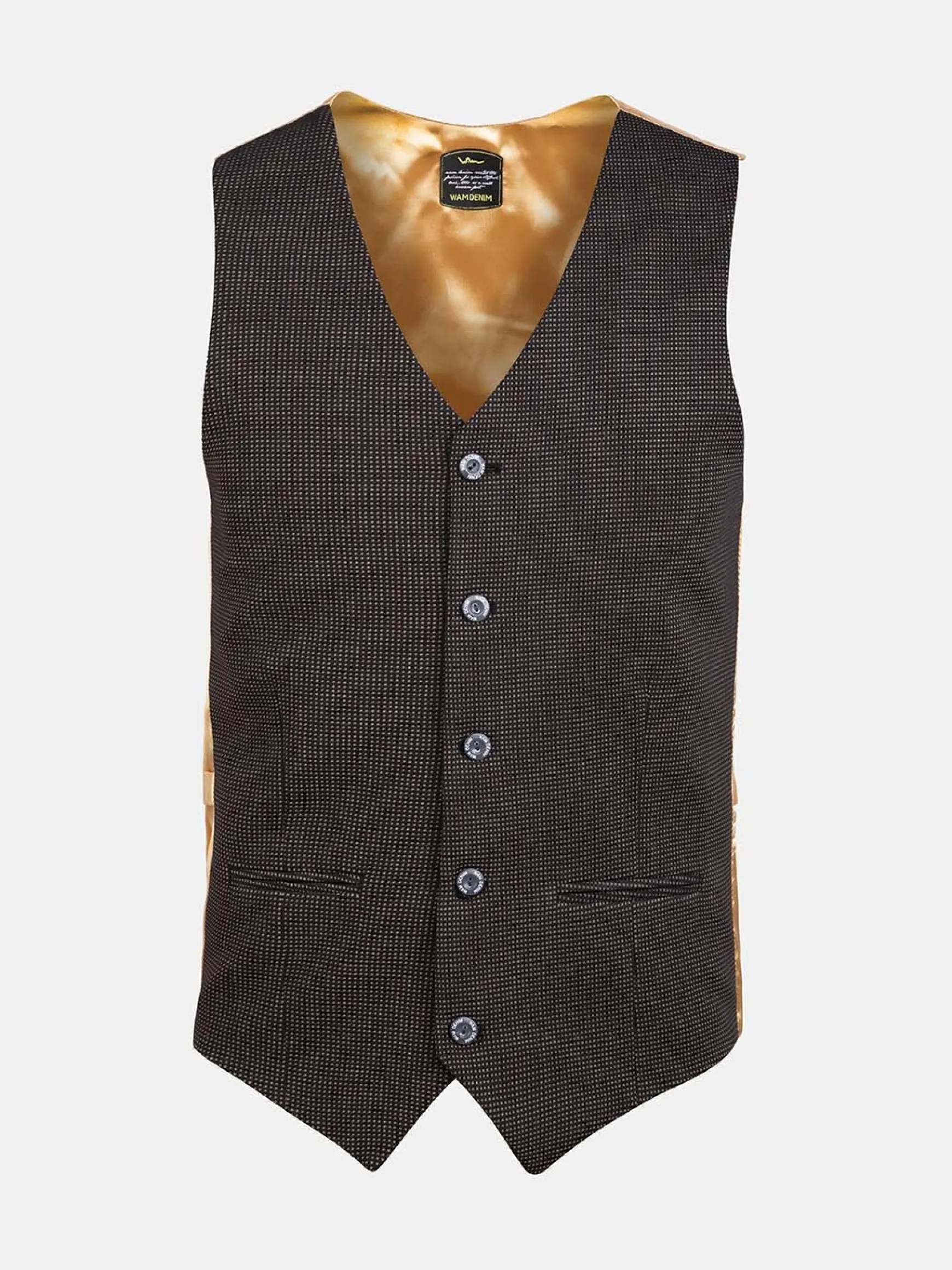 Verfijn je ensemble met onze Slim Fit Black Brown Waistcoat. Dit gilet is perfect op maat gemaakt en straalt tijdloze elegantie uit. Het is gemaakt voor een slanke pasvorm en past bij elke formele kleding. Verhoog je look met deze geraffineerde toevoeging en voeg een vleugje klasse toe aan je stijl.