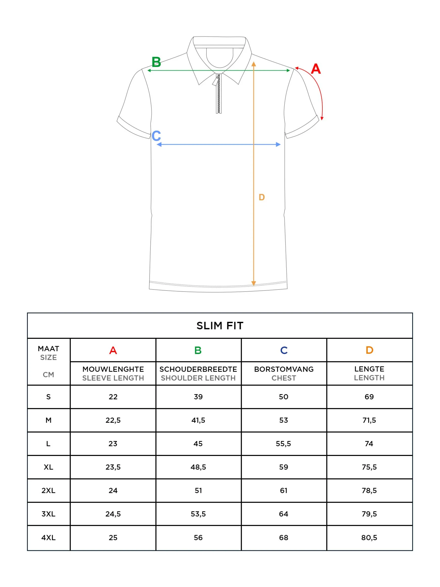 Bestaat uit 95% polyester en 5% lycra. Om de kwaliteit te behouden, raden we aan deze polo binnenstebuiten te wassen op 30°C. Niet bleken. Strijken op een temperatuur van 110 °C. Niet geschikt voor de droger.