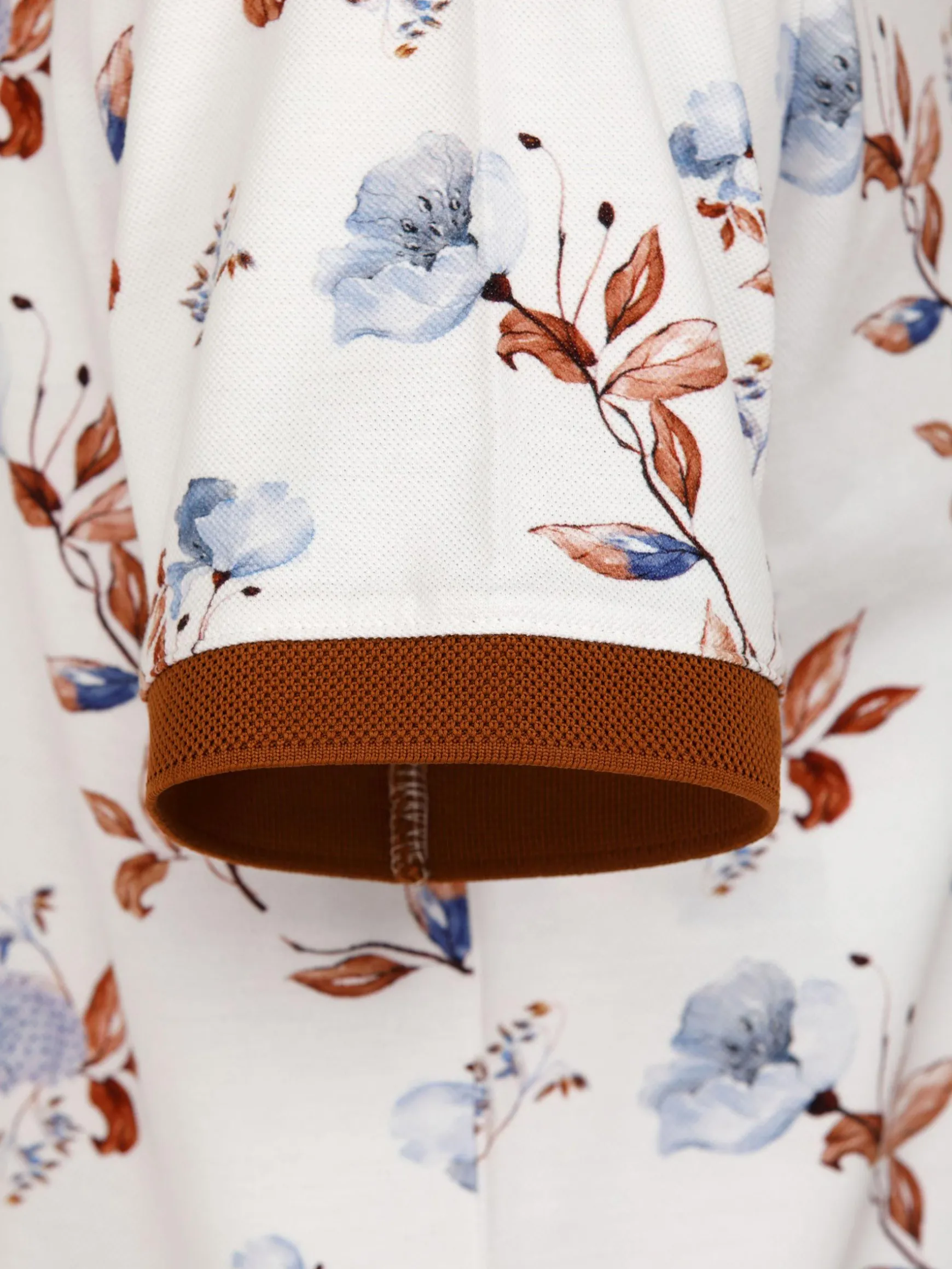 Felix White Polo. een mix van tijdloze elegantie en moderne stijl. Met een klassieke polo hals, ingewikkelde bloemenprints op een witte achtergrond en twee chique kleurencombinaties, biedt het veelzijdigheid voor elke gelegenheid. Met geribde boorden en een slim-fit ontwerp, zorgt het voor zowel comfort als verfijning.