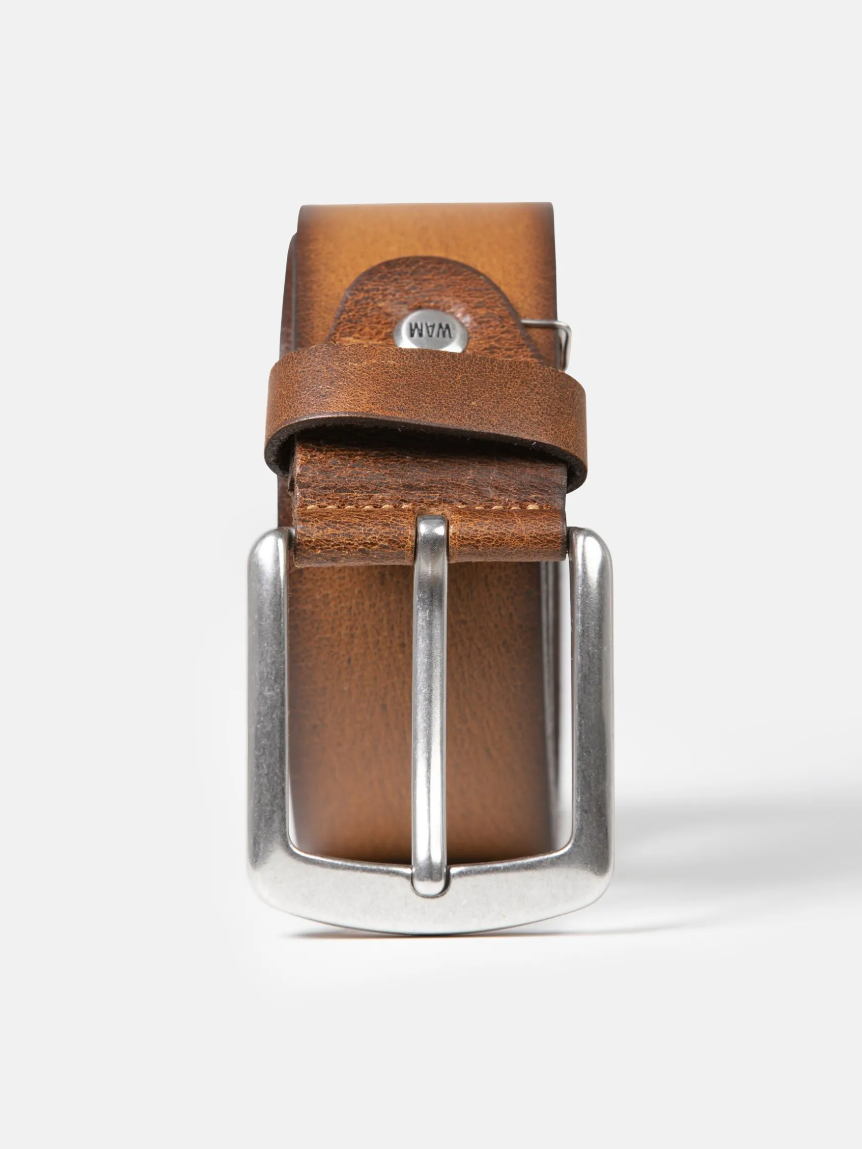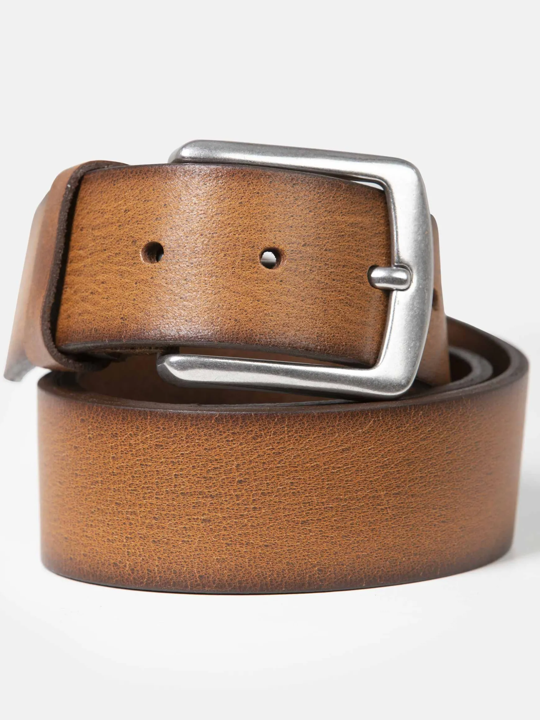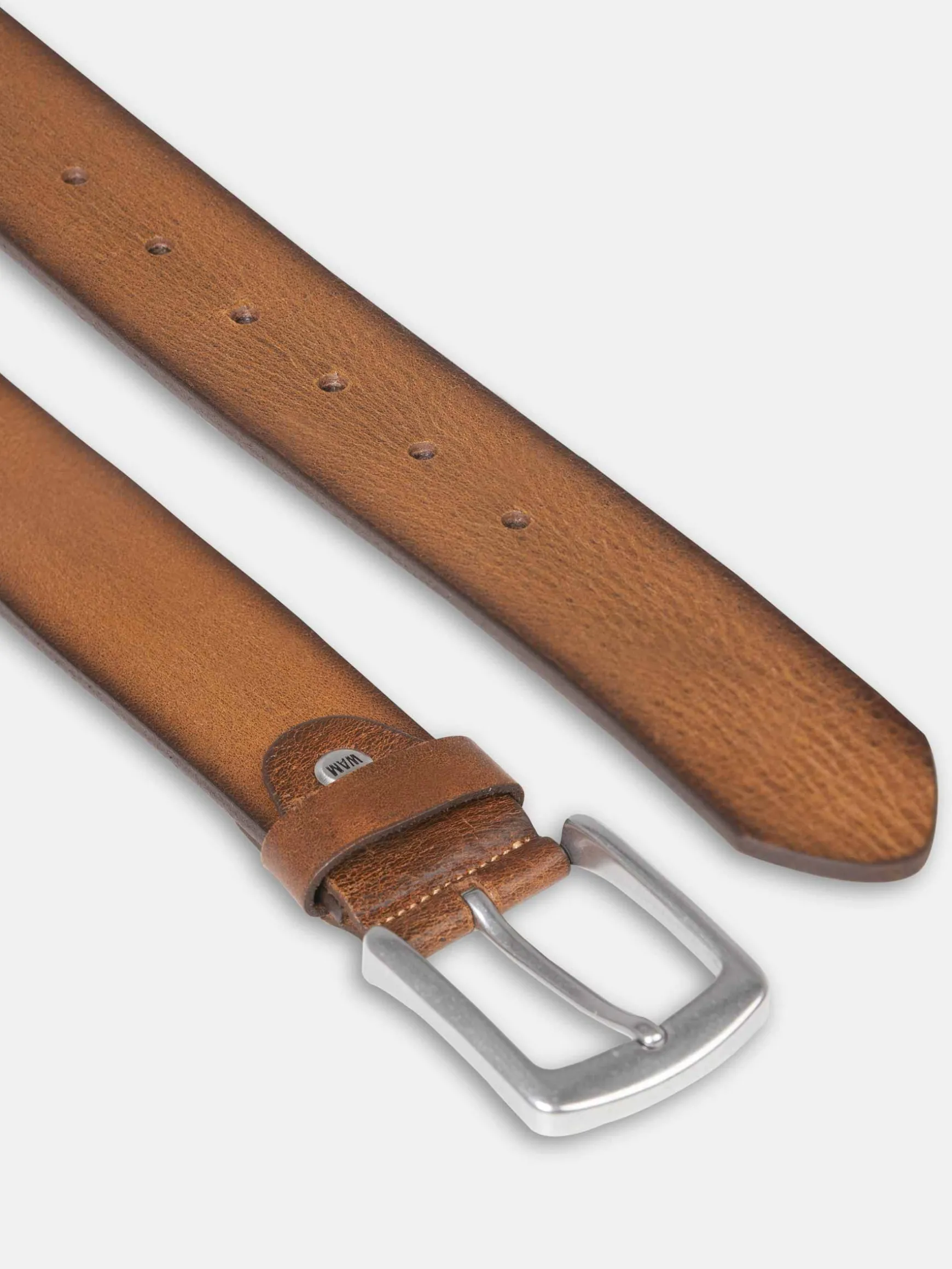 Stijlvolle riem in een effen peru kleur en met een nikkelen gesp. De riem is van 100% leervezel en daarmee is kwaliteit gegarandeerd. Staat heel mooi op een pantalon en jeans.