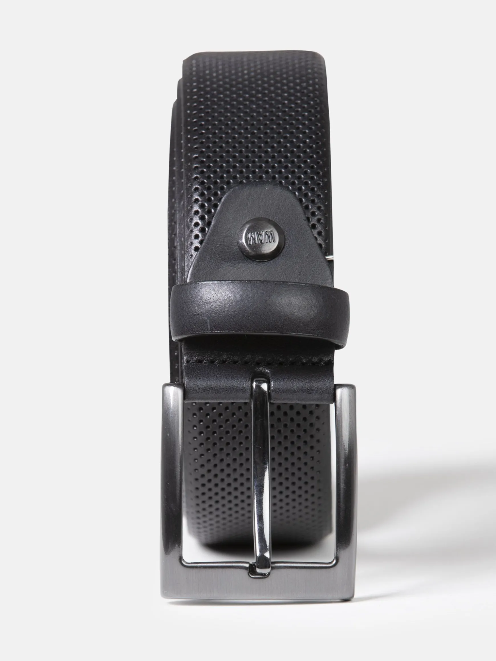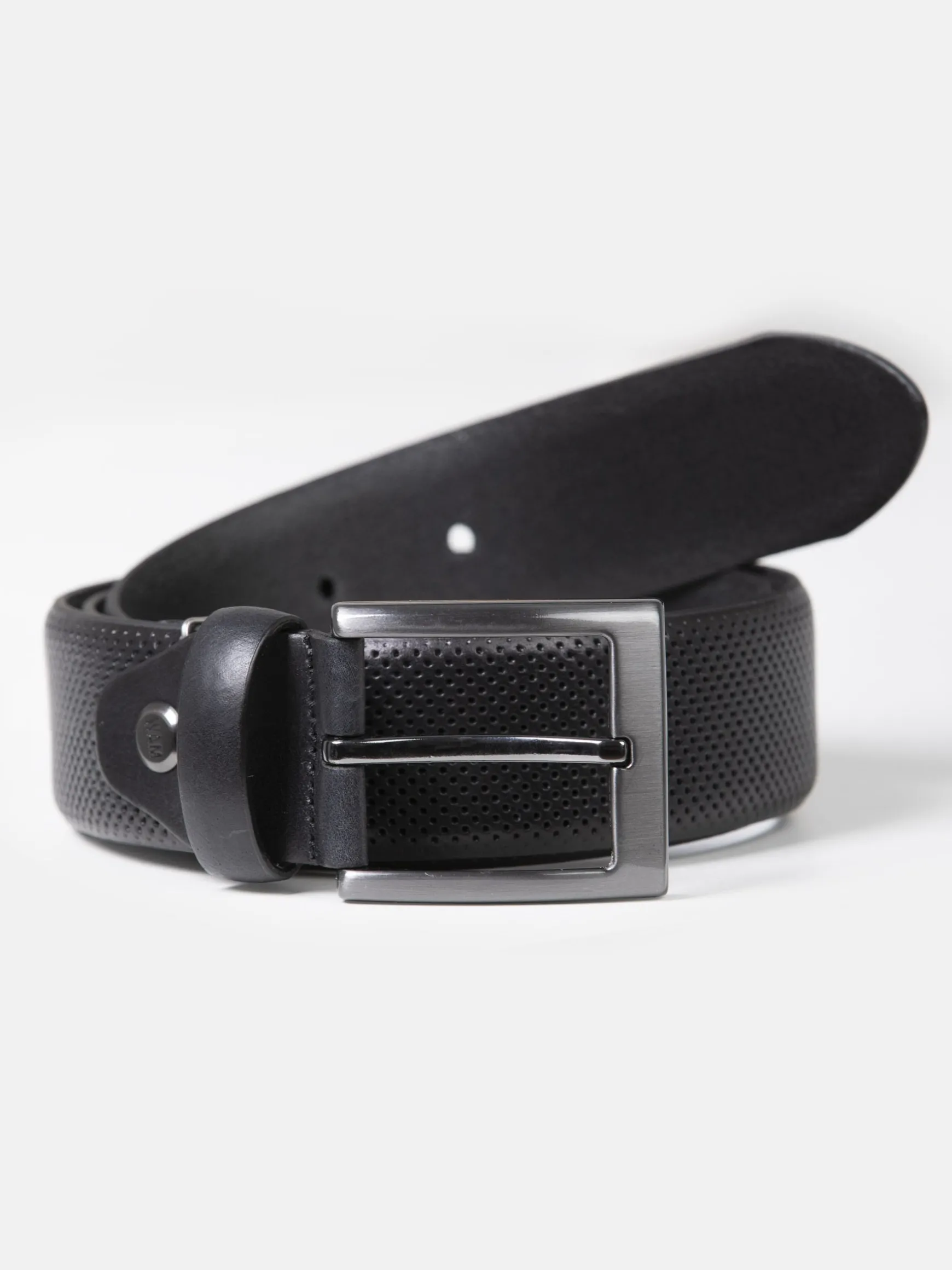 Maak je look af met deze stijlvolle riem, deze riem is voorzien van een geperforeerde inlay voor subtiele details. Een antieke nikkelen gesp verheft deze riem verder.