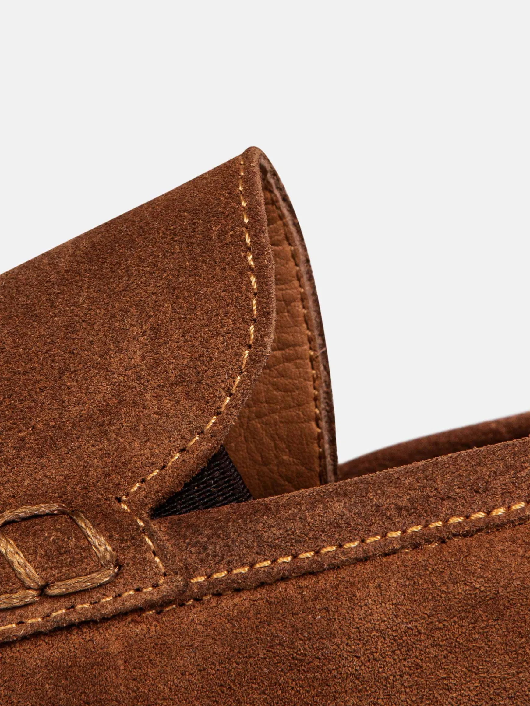 Suede Loafers bieden een mix van stijl en comfort. Deze loafers zijn gemaakt van suède leer en stralen een verfijnde vibe uit. De gladde textuur van suède voegt een vleugje luxe toe aan je schoenencollectie. Met hun slip-on ontwerp en TPU buitenzool bieden ze gemak en gemak voor dagelijks gebruik.