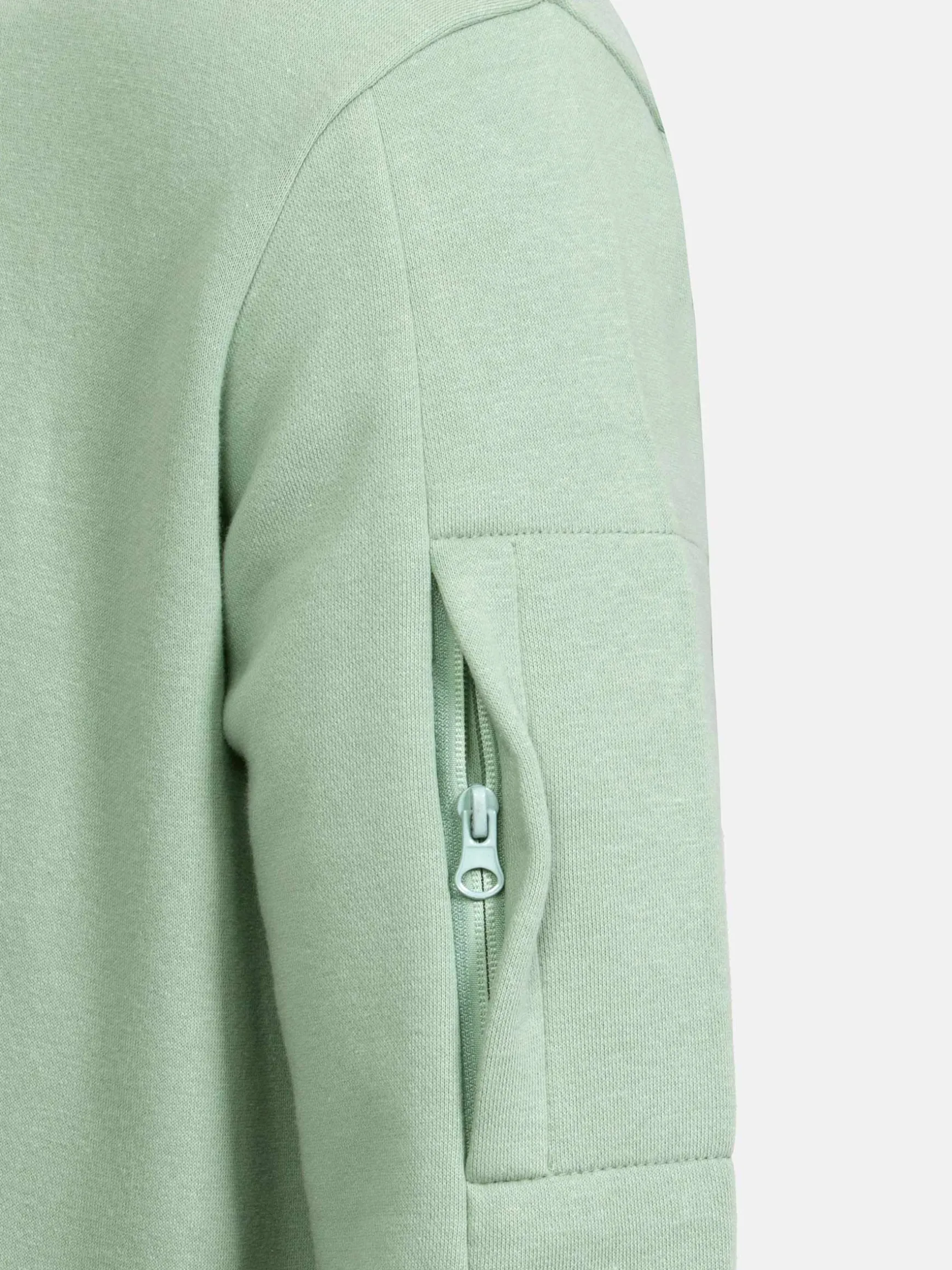 Het bestaat uit 65% katoen en 35% polyester. Om de kwaliteit te behouden, raden we aan deze sweater binnenstebuiten te wassen op 30 °C. Niet bleken. Strijken op maximaal 110 °C. Niet geschikt voor de droger.