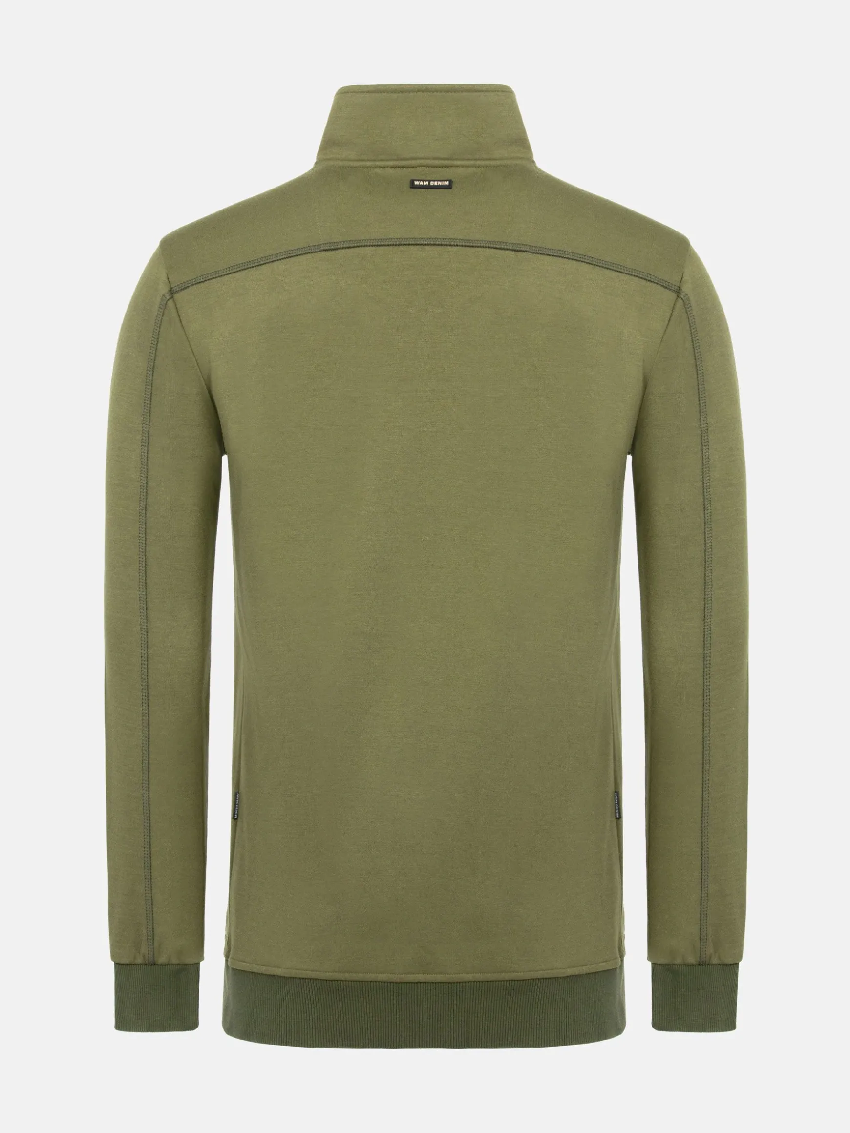 De Akiwa Khaki Sweater met hoge hals is een strak, modern ontwerp met een slanke pasvorm en een hoge hals. Het heeft een functionele halve rits, rekbare stof, een subtiel logo op de borst en een contrasterende Khaki streep op de geribde manchetten en zoom. De klassieke kaki kleur is veelzijdig en geschikt voor zowel casual als semi-formele gelegenheden.