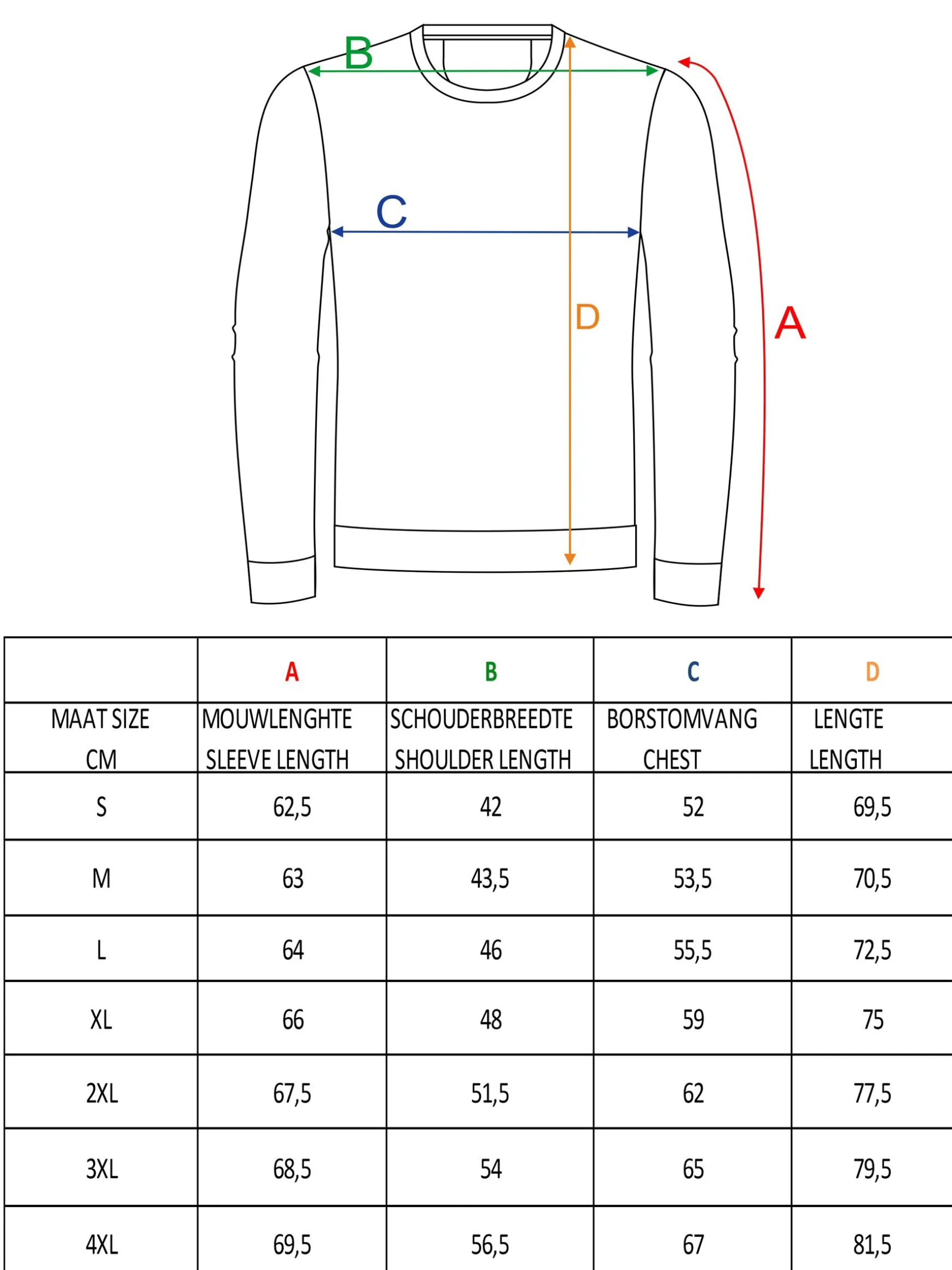 Het bestaat uit 100% katoen. Om de kwaliteit te behouden, raden we aan deze sweater binnenstebuiten te wassen op 30 °C. Niet bleken. Strijken op maximaal 110 °C. Niet geschikt voor de droger.