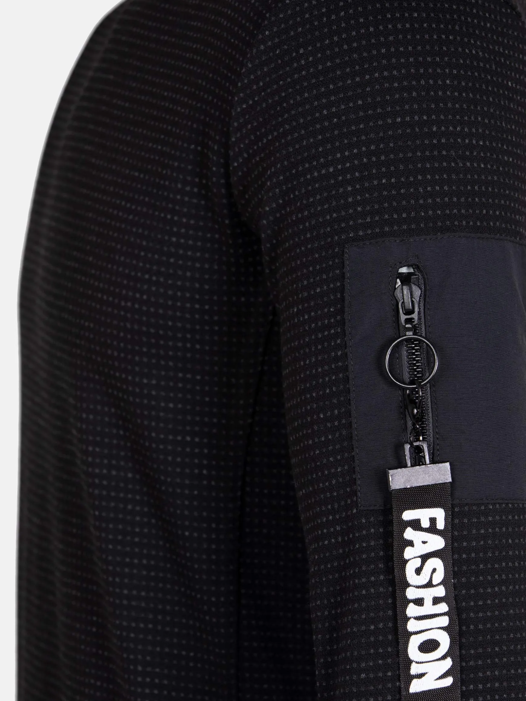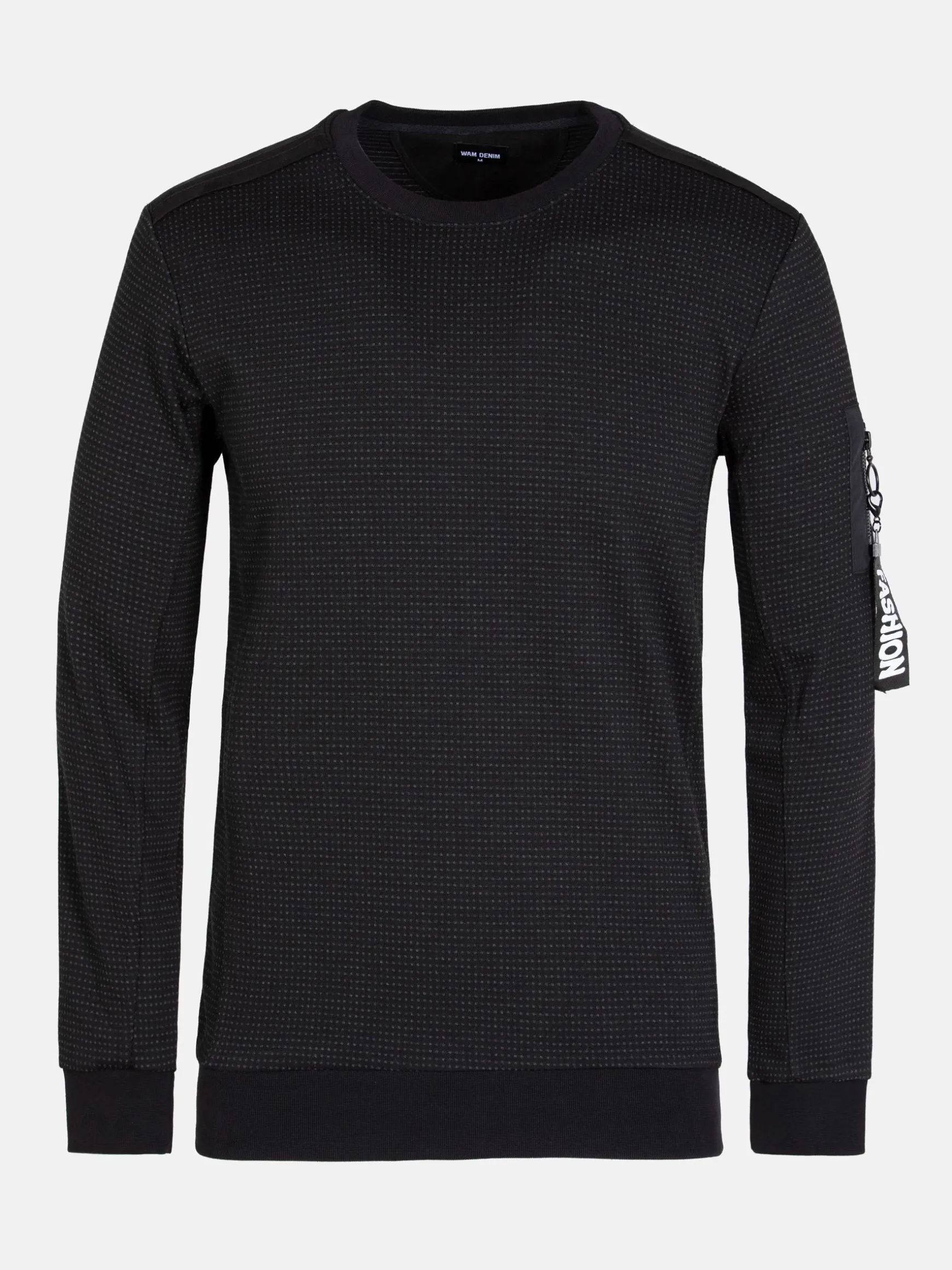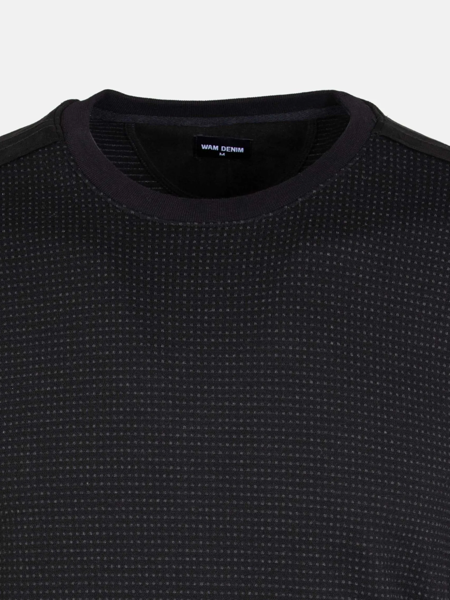 Zwarte trui met ronde hals en heel fijn stippenpatroon voor een mooi effect. De trui heeft een merkembleem op de achterkant in de hals en suède banden op de schouders. De trui heeft een elastisch boord aan de onderkant voor een perfecte pasvorm. De uiteinden van de mouwen zijn ook van stretch.