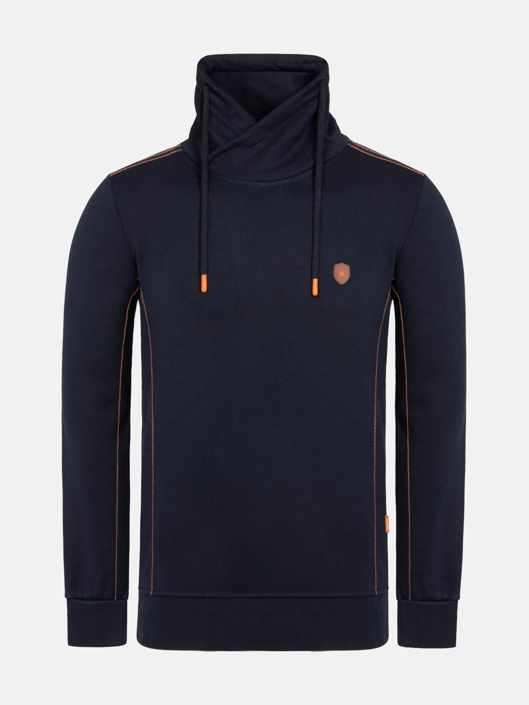 De Mathew Navy Sweater met hoge hals combineert moderne stijl met knus comfort. De kenmerkende gekruiste halslijn met verstelbare trekkoorden voegt een unieke touch toe, terwijl de slanke pasvorm en stretchy stof zorgen voor een flatterend silhouet. De hoge hals zorgt voor extra warmte en de geribde manchetten en zoom zorgen voor een gestroomlijnde afwerking. Perfect om in laagjes of alleen te dragen, combineer het met donkere denim of een getailleerde broek voor een gepolijste winterlook.