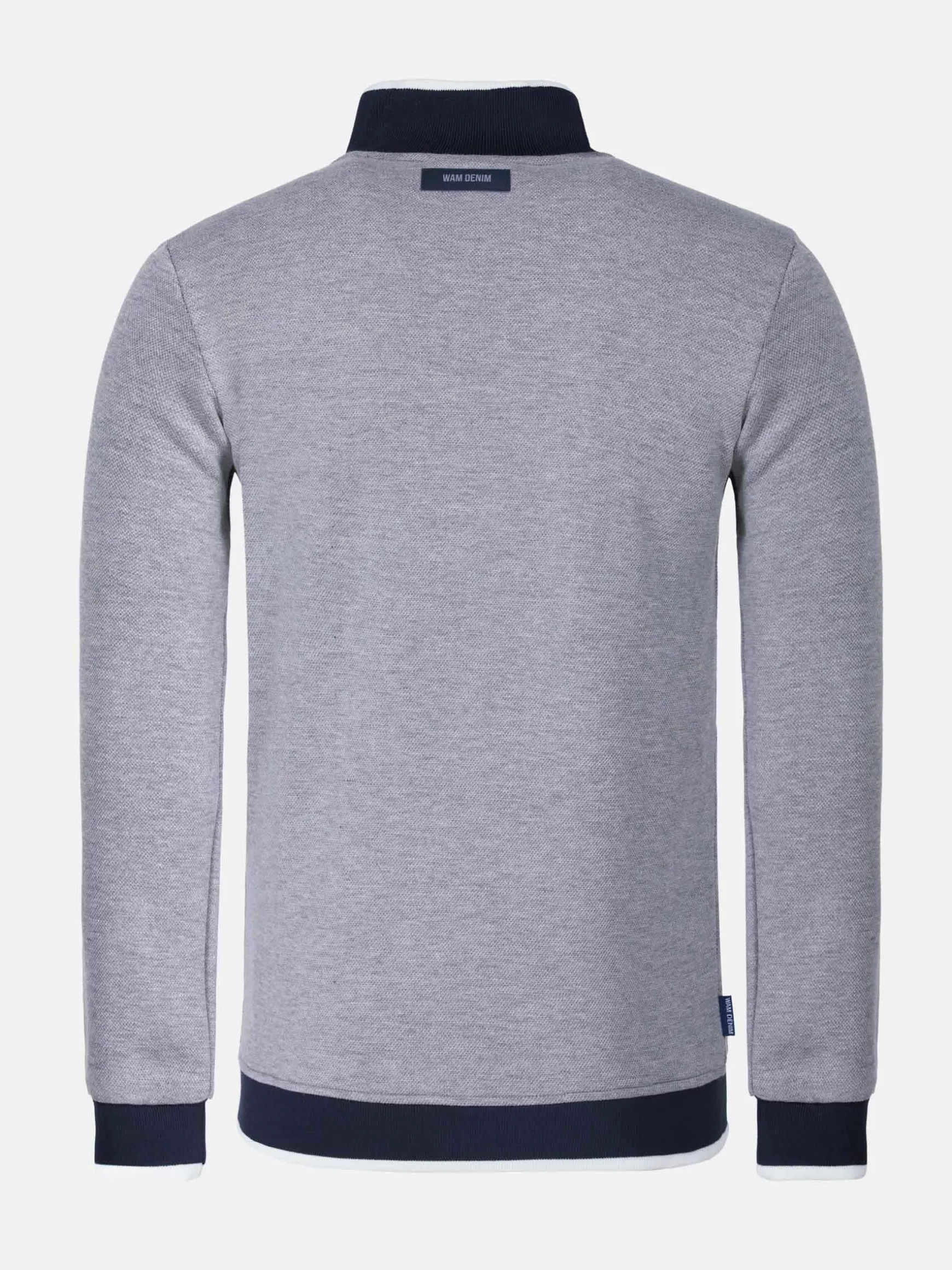 Grijs vest met ritssluiting en opstaande kraag. Het vest heeft twee zijzakken die sluiten met een druksluiting en op de linkerborst een Wam Denim logo. Het vest is in alle seizoenen te combineren met bijvoorbeeld jeans of een chino.
