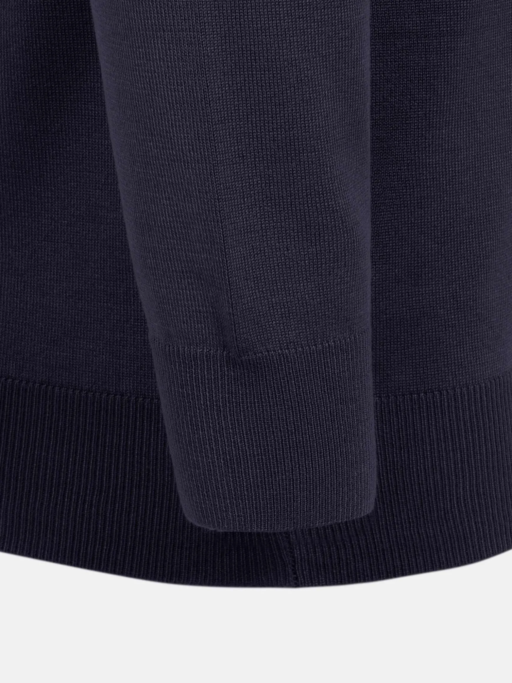 De Athens Pullover met V-hals combineert eenvoud met verfijnde stijl. Ontworpen in een tijdloos V-hals silhouet, heeft deze Navy pullover een elegant gebreid structuurpatroon op de voorkant, wat diepte en dimensie toevoegt aan het minimalistische ontwerp. De zachte stof van hoge kwaliteit biedt comfort en warmte, waardoor hij perfect is voor koelere dagen. De geribde details aan de manchetten en zoom zorgen voor een goede pasvorm, terwijl de veelzijdige Navy-tint het een essentieel laagjesstuk maakt voor elke gelegenheid.