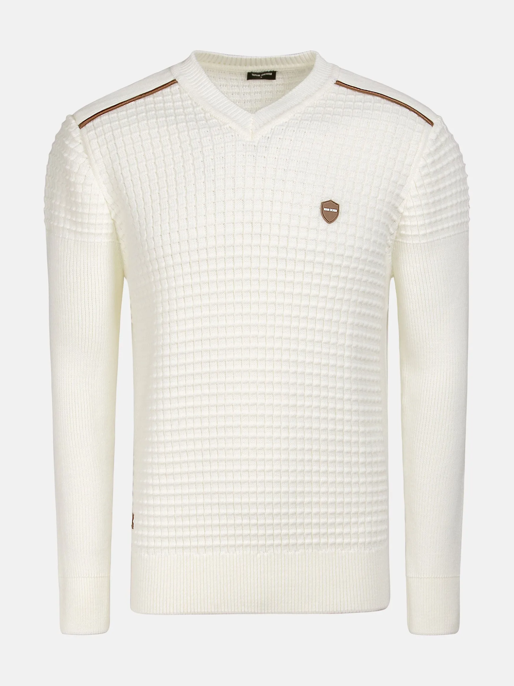 Ontdek gezellige knitwear! Onze Slim Fit Off-White Knitwear met V-hals combineert moeiteloos comfort en mode, waardoor het de ideale keuze is voor elke gelegenheid. Of je nu naar een casual uitje gaat of naar een speciaal evenement, deze knitwear is je perfecte metgezel. Ervaar de mix van zachtheid en trendyheid. Pak de jouwe nu en stap uit in stijl.