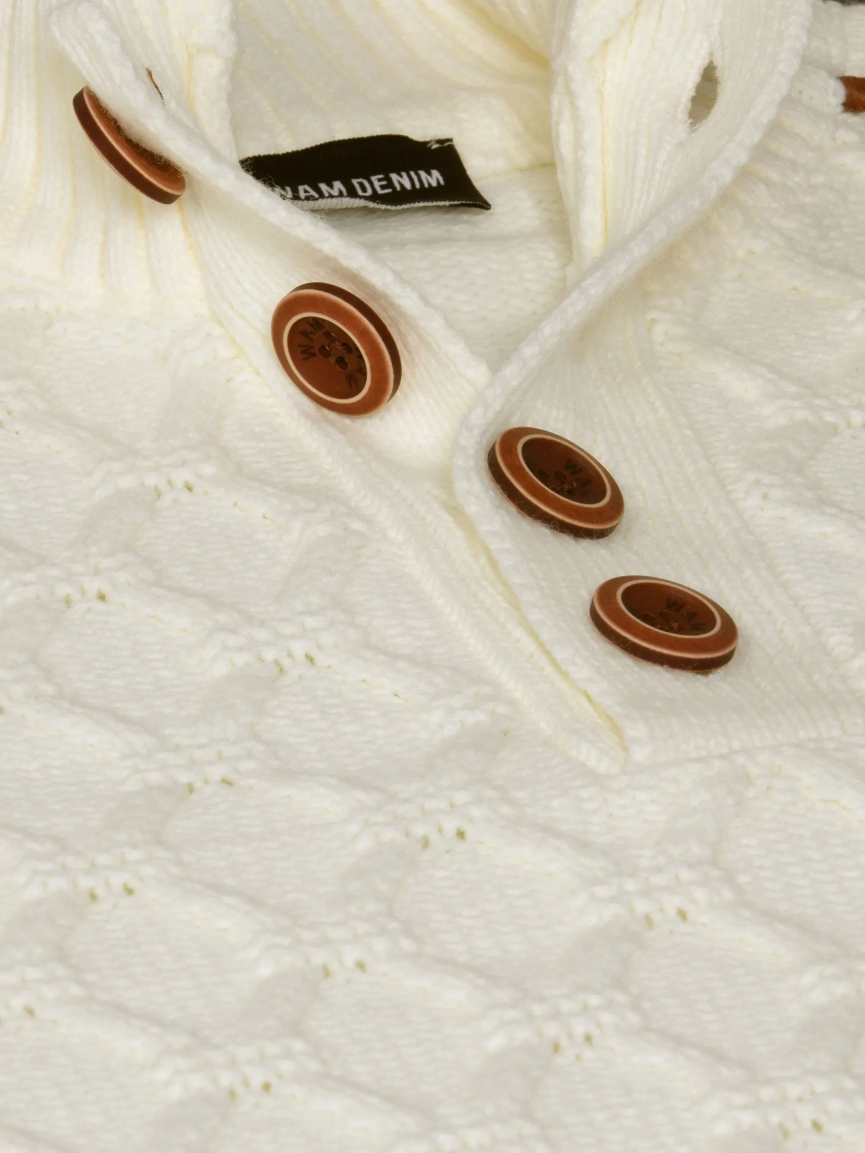 De Minevre Off White Knitwear heeft een slanke pasvorm met een opvallend kabelpatroon. Het ontwerp met hoge hals, aangevuld met een stijlvolle knoopsluiting, zorgt voor een eigentijds accent, terwijl geribde details op de schouders en manchetten een vleugje raffinement toevoegen. De veelzijdige off-white tint maakt het een tijdloos stuk, perfect voor elke gelegenheid.