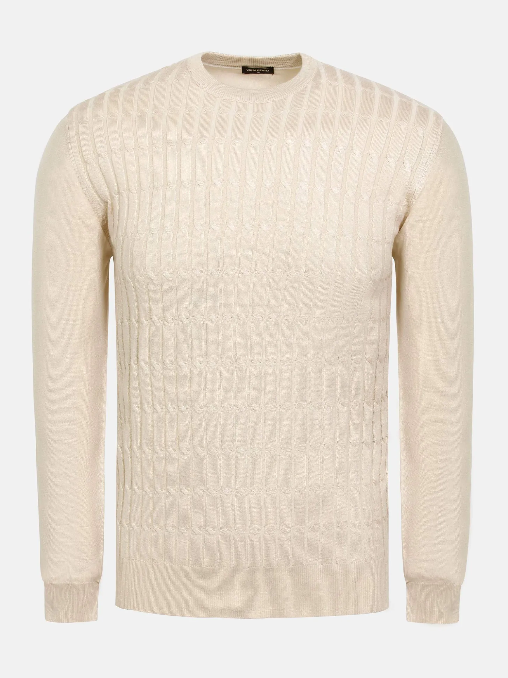 De Ruth Crew Neck Pullover combineert eenvoud met verfijnde stijl. Deze pullover in beige heeft een tijdloos silhouet met ronde hals en een elegant gebreid structuurpatroon op de voorkant, dat diepte en dimensie toevoegt aan het minimalistische ontwerp. De zachte stof van hoge kwaliteit biedt comfort en warmte, waardoor hij perfect is voor koelere dagen. De geribde details aan de manchetten en zoom zorgen voor een goede pasvorm, terwijl de veelzijdige kleur Beige het een essentieel laagjesstuk maakt voor elke gelegenheid.