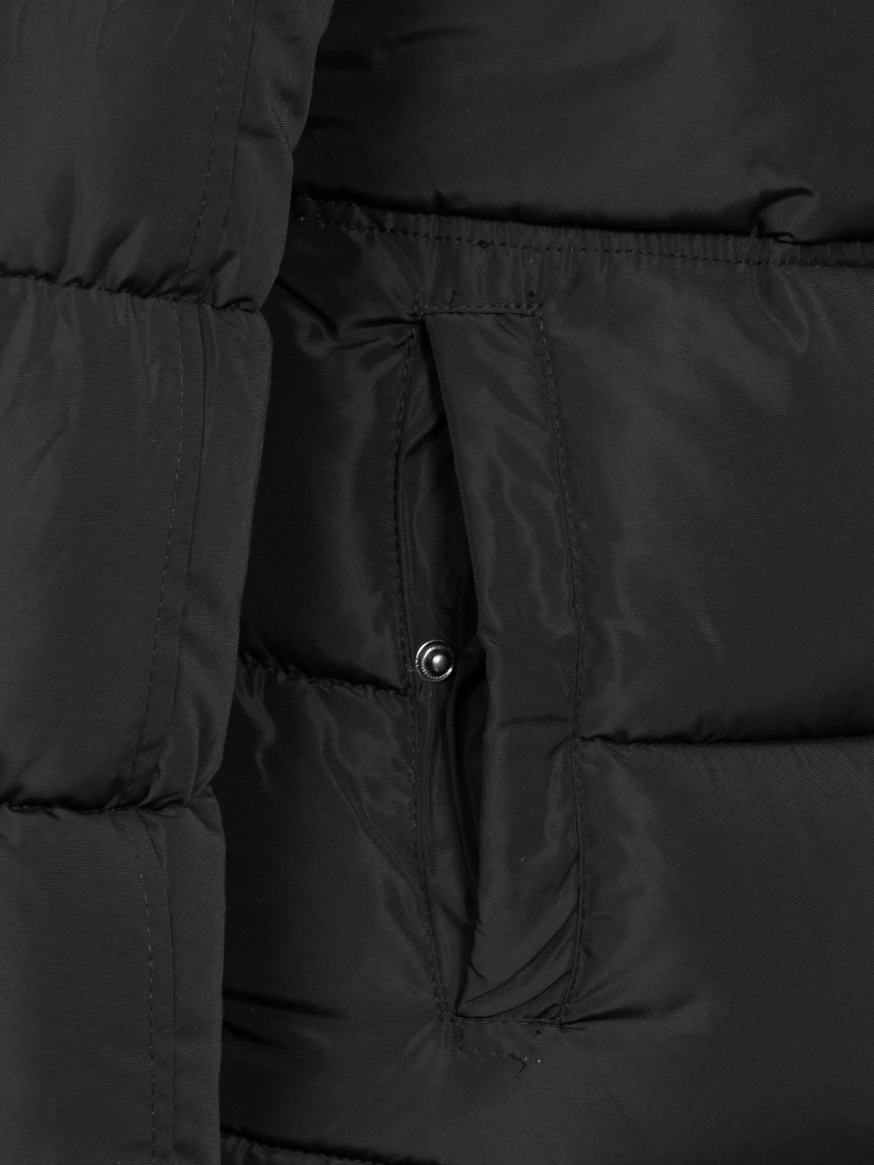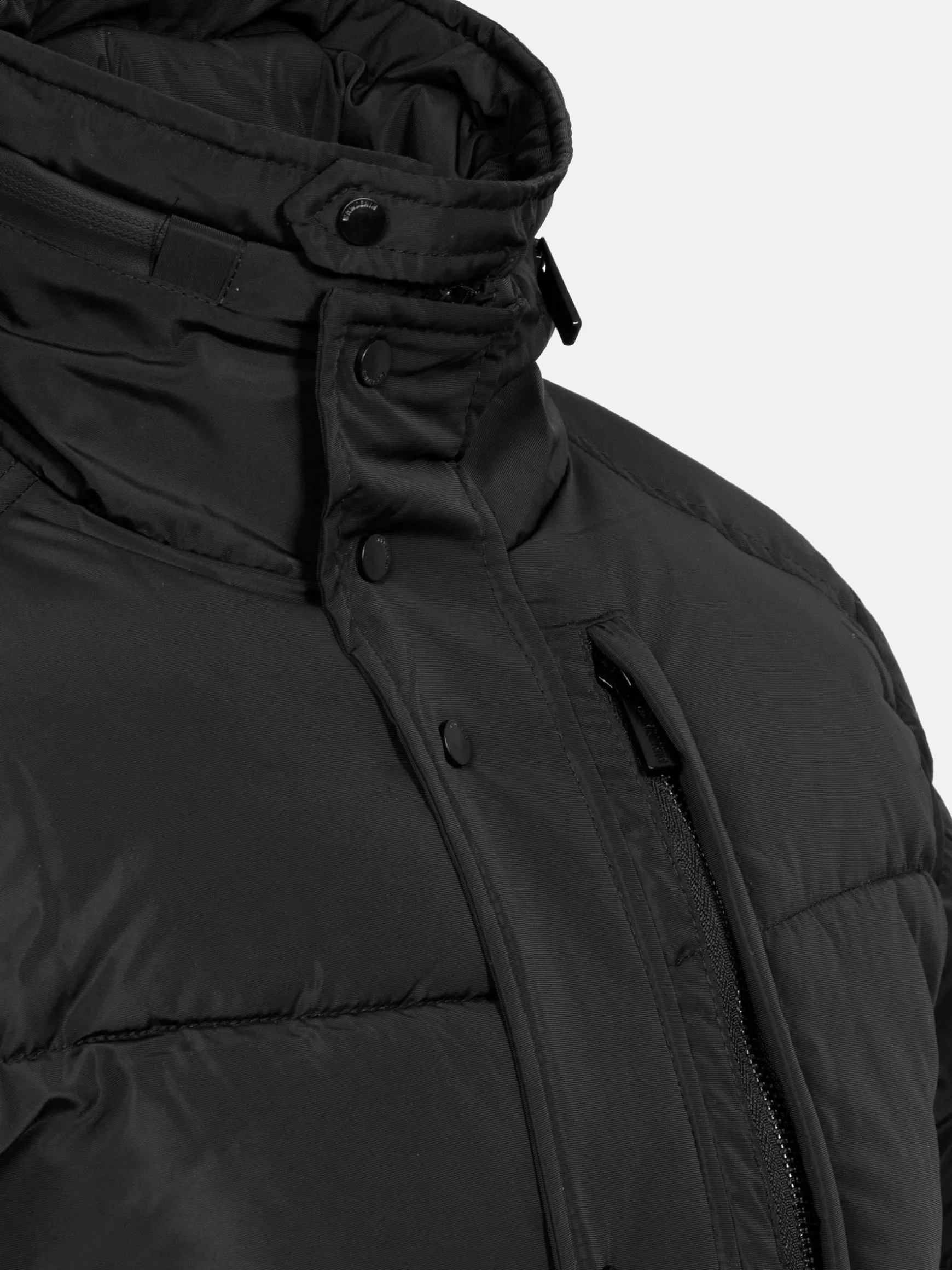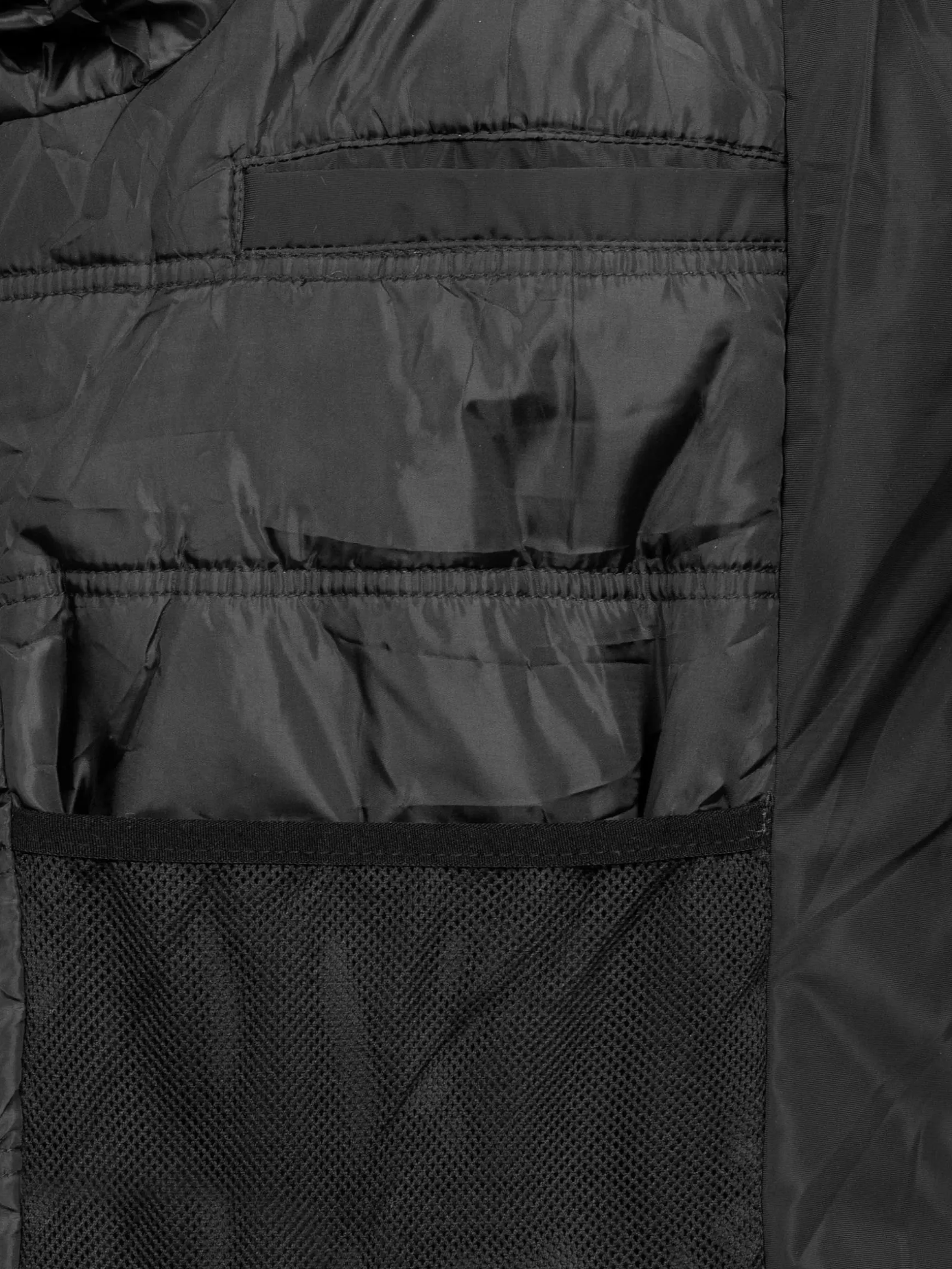 De Arian Black Winter Jacket combineert stijl en functionaliteit met water- en winddichtheid, puffer isolatie, borstzakken, dubbele voorzakken, geribde manchetten, een hoge hals en een nekknoopsluiting voor een perfecte pasvorm. Blijf warm en stijlvol deze winter.